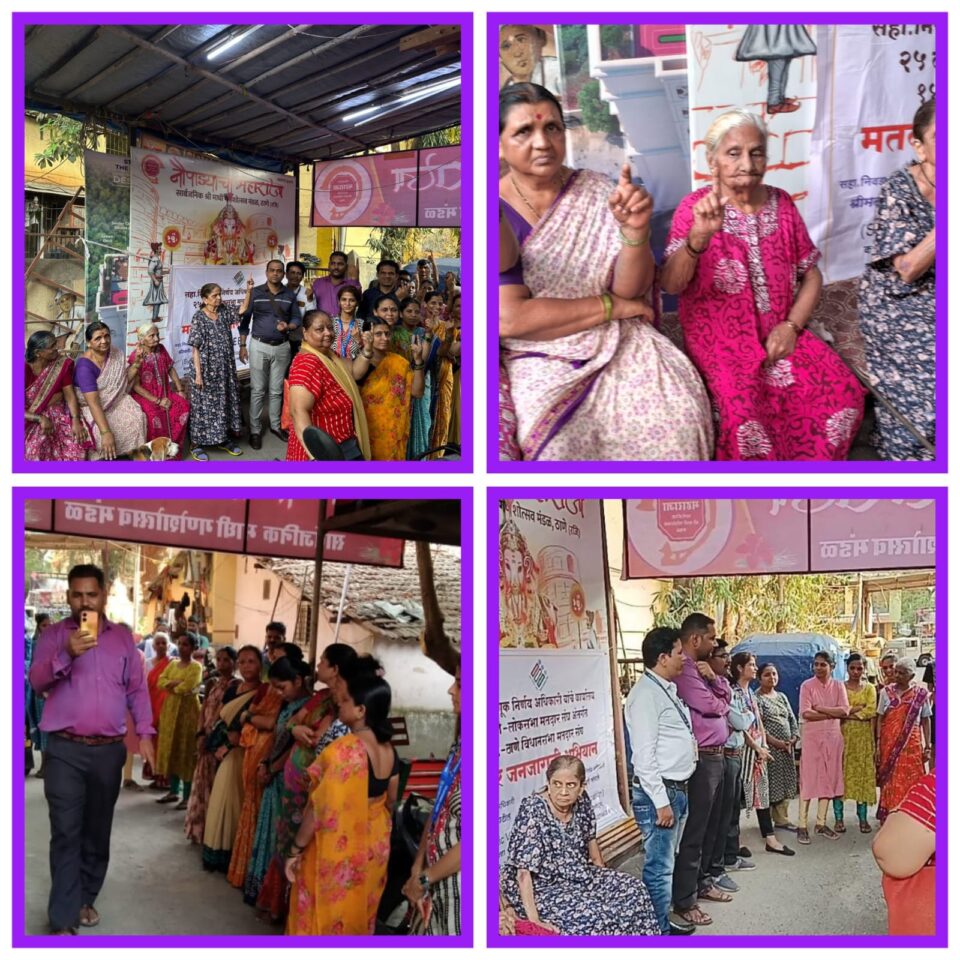 ठाणे, प्रतिनिधी – लोकसभा निवडणुकीच्या मतदानात ठाणे जिल्ह्यातील महिलांचा टक्का वाढविण्यासाठी वाढवण्यासाठी २५ ठाणे-लोकसभा मतदार संघअंतर्गत,१४८ ठाणे विधानसभा मतदार संघात स्वीप कार्यक्रमाअंतर्गत विशेष प्रयत्न करण्यात येत आहेत. याअंतर्गत १४८ ठाणे विधानसभा मतदार संघाच्या स्वीप टीमने भांजेवाडी येथील उतेकर चाळीत महिला बचत गटांच्या महिलांना मतदानाचे महत्त्व समजावून सांगितले.