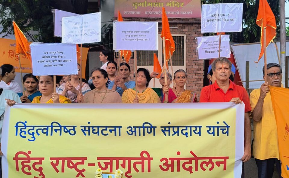 भारत ही साधू-संतांची भूमी आहे. संतांनी संपूर्ण विश्वामध्ये जाऊन भारतीय संस्कृती, धर्म, ज्ञान, कला, सभ्यता, सदाचार, तसेच भगवद्भक्ती शिकवूण समाजाला आदर्श जीवन जगण्यासाठी प्रोत्साहित केले आहे. असे असतांना अभिनेता आमिर खानचा मुलगा जुनैद खान, तसेच ‘यशराज फिल्म्स’ यांच्या ‘महाराज’ या चित्रपटातून साधूसंतांना दुराचारी, गुंड दाखवून त्यांची बदनामी करण्यात आली आहे. त्यामुळे या चित्रपटावर तत्काळ बंदी घालावी, अशी मागणी हिंदु जनजागृती समितीने आंदोलनाच्या माध्यमातून केली आहे. 12 जून या दिवशी दुपारी 4 वाजता श्री शिवाजी महाराज पुतळ्याजवळ, कोथरूड, पुणे येथे हे आंदोलन घेण्यात आले. या आंदोलनात हिंदु जनजागृती समितीचे श्री. पराग गोखले यांच्यासह समविचारी संघटनाही सहभागी झाल्या होत्या.