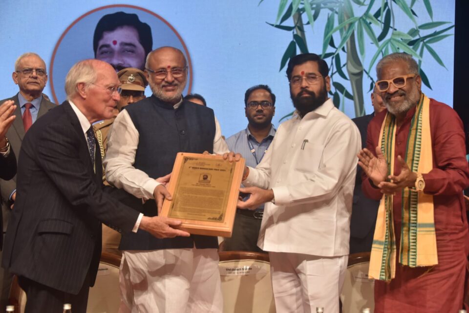 पर्यावरण रक्षण, शाश्वत विकास आणि हरित महाराष्ट्रासाठी मुख्यमंत्री शिंदे यांच्या कामाची दखल घेऊन ‘वर्ल्ड ॲग्रीकल्चर फोरम’कडून त्यांना जागतिक कृषी पुरस्काराने आज सन्मानित करण्यात आले. फोरमचा हा दुसराच पुरस्कार असून हा पुरस्कार राज्यपाल सी. पी. राधाकृष्णन यांच्या हस्ते मुख्यमंत्री श्री शिंदे यांना प्रदान करण्यात आला. जागतिक बांबू दिनाच्या औचित्याने या समारंभाचे आयोजन करण्यात आले. एनसीपीएच्या सभागृहात झालेल्या या समारंभास महाराष्ट्र कृषी मुल्य आयोगाचे अध्यक्ष पाशा पटेल, ‘वर्ल्ड एग्रीकल्चर फोरम’चे अध्यक्ष डॉ. रुडी रॅबिंगे, फोरमचे आशिया प्रांताचे उपाध्यक्ष डॉ. विलियम्स दार, आफ्रिका प्रांताचे उपाध्यक्ष प्रो. लिंदवे सिंबादा, अमेरिका प्रांताचे उपाध्यक्ष डॉ. केनिथ क्वीन्, फोरमचे भारतातील संचालक तथा इंडियन चेंबर ऑफ फूड ॲग्रीकल्चरचे अध्यक्ष डॉ एमजे खान, महाराष्ट्र प्रदूषण नियंत्रण मंडळाचे अध्यक्ष सिद्धेश कदम, पर्यावरण व वातावरणीय बदल विभागाचे प्रधान सचिव प्रवीण दराडे उपस्थित होते.