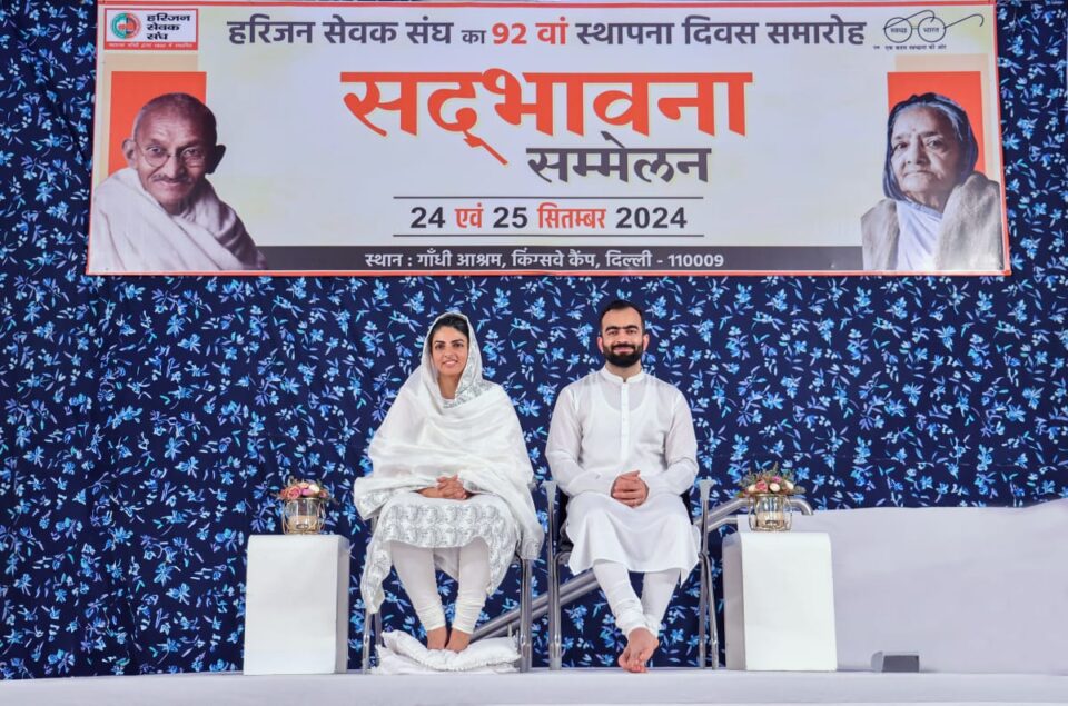 या प्रसंगी हरिजन सेवक संघाचे अध्यक्ष डॉक्टर शंकर कुमार सान्याल व उप-प्रधान श्री.नरेश यादव यांनी सतगुरु माताजी व निरंकारी राजपिता रमितजी यांचा वस्त्र-प्रावरण व सूती दुपट्टयाद्वारे स्वागत-सत्कार केला. देशाचे राष्ट्रपिता महात्मा गांधीजी यांनी स्थापन केलेल्या या ऐतिहासिक वारसा रूपी संस्थेच्या स्थापना दिवसाचे औचित्य साधून चरख्याचे लघु स्मृति चिन्ह देखील या सेवक संघाच्या वतीने सद्गुरु माताजींना समर्पित करण्यात आले.