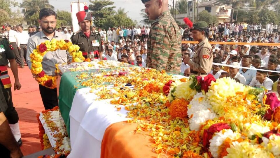 सातारा, प्रतिनिधी: शहीद वीर जवान शुभम घाडगे यांच्या पार्थिवावर आज सातारा तालुक्यातील कामेरी येथे शासकीय इतमामात अंत्यसंस्कार करण्यात आले.