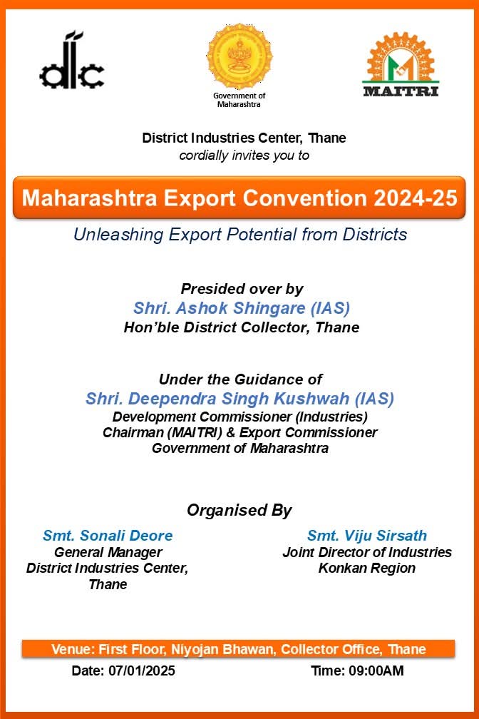ठाणे जिल्हा उद्योग केंद्राच्या वतीने दि.7 जानेवारी रोजी महाराष्ट्र निर्यात संमेलनाचे आयोजन