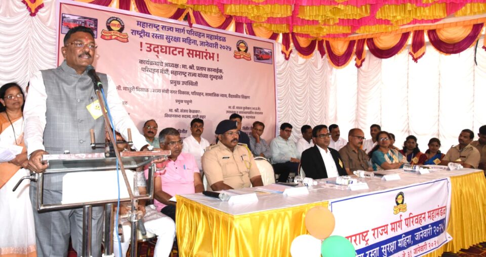 प्रवासी व एसटी महामंडळाच्या कर्मचाऱ्यांना उत्तम सोयीसुविधा देण्यासाठी कटिबद्ध – परिवहन मंत्री प्रताप सरनाईक‘राष्ट्रीय रस्ता सुरक्षित महिना- २०२५’ चे उद्घाटन व नवीन इलेक्ट्रिक बस लोकार्पण परिवहन मंत्री प्रताप सरनाईक यांच्या हस्ते संपन्न..