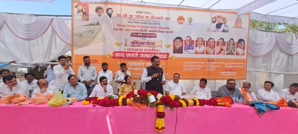 तलवाडा येथे पालकमंत्री संजय शिरसाठ यांच्या हस्ते शिऊर बंगला ते नांदगाव मार्गाचे सिमेंट कॉंक्रिटीकरण कामाचे भूमिपूजन आज करण्यात आले. आमदार प्रा. रमेश बोरनारे, कन्नडच्या आमदार संजना जाधव, माजी आमदार भाऊसाहेब चिकटगावकर, अभय चिकटगावकर, राजेंद्र जंजाळ आदी मान्यवर यावेळी उपस्थित होते.