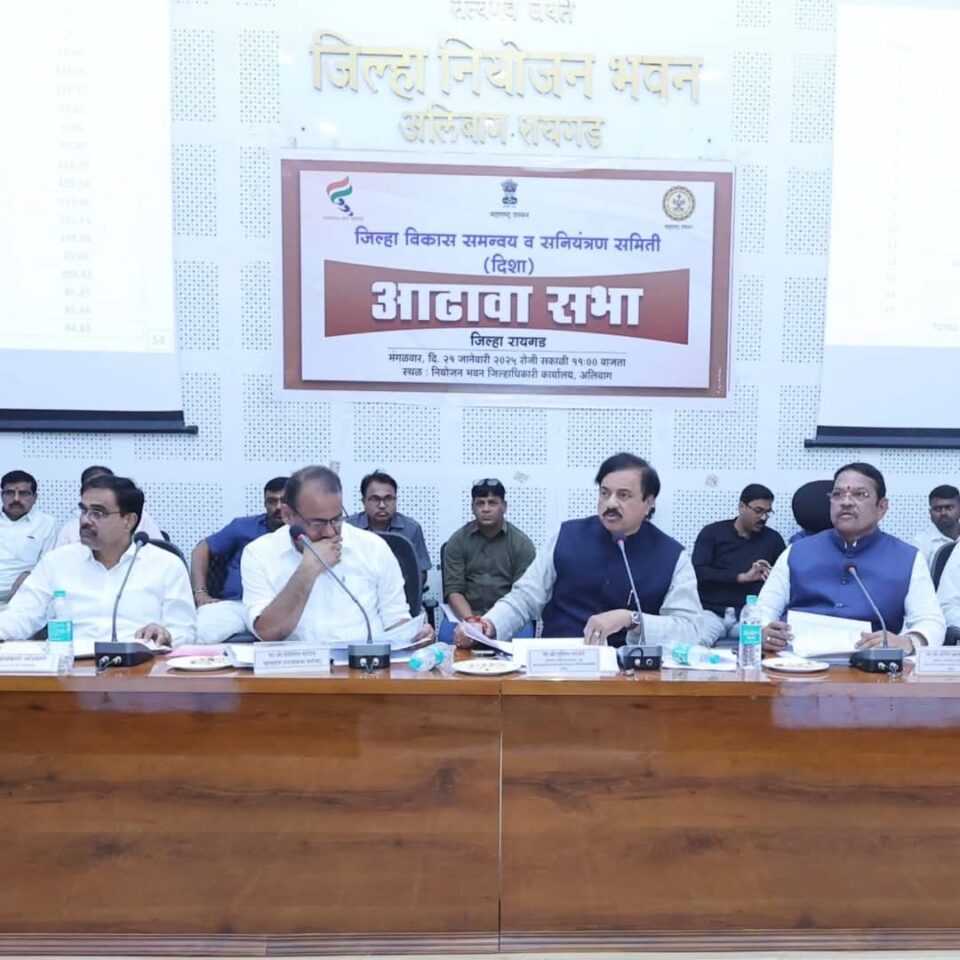 रायगड प्रतिनिधी- केंद्र शासनामार्फत लोककल्याणाच्या प्रभावी योजना राबविण्यात येत आहेत. या सर्व योजनांची जिल्ह्यात प्रभावी अंमलबजावणी करावी. वैयक्तिक लाभाच्या योजना राबवितांना लाभार्थ्यांना 100 टक्के लाभ मिळेल यासाठी सर्व यंत्रणांनी दक्ष रहावे असे निर्देश खा. श्रीरंग बारणे यांनी दिले. केंद्र शासनाच्या योजना राबविताना जाणीवपूर्वक दिरंगाई करणाऱ्या सर्व घटकावर कायदेशीर कारवाई करण्याच्या सूचना खा. सुनील तटकरे यांनी दिल्या.     जिल्हा विकास समन्वयक व सनियंत्रण (दिशा) समितीची बैठक खासदार श्री. श्रीरंग बारणे यांच्या अध्यक्षतेखाली तसेच खासदार श्री. सुनील तटकरे यांच्या सहअध्यक्षतेखाली जिल्हा नियोजन समिती सभागृहात आज झाली. बैठकीला खा. धैर्यशील पाटील, आ. प्रशांत ठाकूर, आ.रविंद्र पाटील,पोलीस अधीक्षक सोमनाथ घार्गे, मुख्य कार्यकारी अधिकारी डॉ भारत बास्टेवाड, पनवेल मनपा आयुक्त मंगेश चितळे, उपवनसंरक्षक राहुल पाटील, अप्पासाहेब निकत, अपर जिल्हाधिकारी सुनील थोरवे,अतिरिक्त मुख्य कार्यकारी अधिकारी डॉ. सत्यजित बडे,सर्व विभागाचे विभाग प्रमुख उपस्थित होते.                                                                                                                                                                                                                                                            लोकहिताची विकास कामे करतांना प्रशासकीय अधिकाऱ्यांनी अधिक सजग रहावे. सर्व कामे विहित मुदतीत पूर्ण करण्यावर भर द्यावा. या योजनासंदर्भातील उदासीनता दूर करून प्रभावीपणे योजना राबवावी. जलजीवन मिशन अंतर्गत सुरु असलेल्या कामांची तपासणी करावी, त्यांचा आढावा घेण्यात यावा तसेच पूर्ण झालेल्या योजनामध्ये पाणी पुरवठा सुरळीत सुरु आहे का याची खातरजमा करावी असेही श्री बारणे यांनी यावेळी सांगितले.