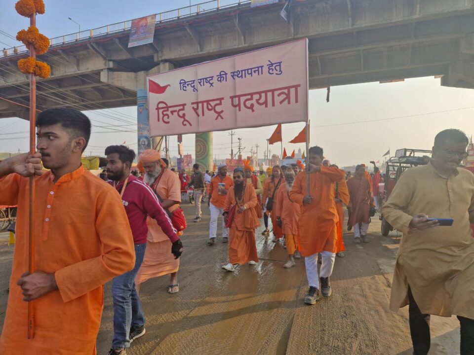 *या वेळी हिंदु जनजागृती समितीचे राष्ट्रीय मार्गदर्शक सद्गुरु (डॉ.) चारुदत्त पिंगळे* म्हणाले की, हिंदु धर्म ‘वसुधैव कुटुंबकम्’ची शिकवण देतो. अशा धर्माला संविधानाद्वारे अधिकृत संरक्षण मिळण्यासाठी भारताला हिंदु राष्ट्र घोषित करणे आवश्यक आहे. ही मागणी विश्वकल्याणासाठी कार्यरत असलेल्या हिंदु संस्कृतीला जिवंत ठेवण्यासाठी आहे. महाकुंभक्षेत्राकडे पूर्ण जगाचे लक्ष आहे. त्यामुळे या पदयात्रेच्या माध्यमातून हिंदु संत, महंत, देश-विदेशातील हिंदु समाज यांच्या मनातील हिंदु राष्ट्राची मागणी अाम्ही सरकारपर्यंत पोचवण्याचा प्रयत्न करत आहोत. संतांच्या सान्निध्यात कुंभसारख्या महत्त्वपूर्ण पर्वावर प्रयागराजसारख्या धार्मिक नगरीत केलेली हिंदु राष्ट्राची मागणी लवकरच फलद्रुप होईल, अशी आमची श्रद्धा आहे. या वेळी ‘विश्वकल्याणासाठी भारतात हिंदु राष्ट्राची स्थापना व्हावी’, यासाठी पदयात्रेच्या शेवटी कुंभस्थित देवता आणि ऋषीमुनी यांच्या चरणी सामूहिक प्रार्थना करण्यात आली. आपला नम्र,*श्री. विश्वनाथ कुलकर्णी* ,समन्वयक, उत्तरप्रदेश आणि बिहार राज्य, हिंदु जनजागृती समिती, (संपर्क : ९३२४८६८९०६)