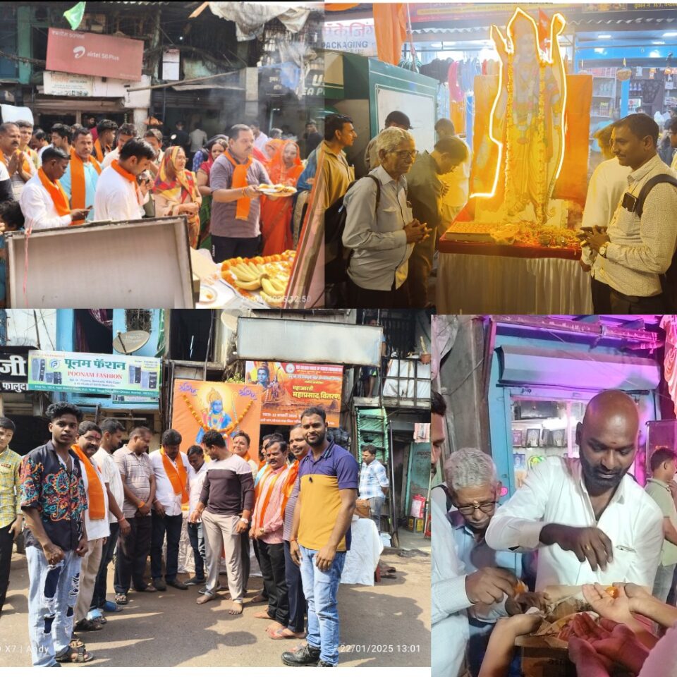 अयोध्येतील प्रभू श्री राम मंदिराच्या राम लल्लाच्या प्राणप्रतिष्ठा अभिषेक सोहळा याचा प्रथम वर्धापन दिनानिमित्त पूजा अर्चना करून प्रसाद वाटप भाजपाने धारावी विभागात केले