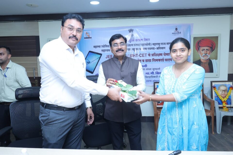 रायगड प्रतिनिधी– सध्या स्पर्धेच्या काळात ऑनलाईन शिक्षणाला अधिक महत्त्व प्राप्त झाल्यामुळे इतर मागासवर्गीय, विमुक्त जाती भटक्या जमाती, विशेष मागास प्रवर्गातील विद्यार्थ्यांना महात्मा ज्योतीबा फुले संशोधन व प्रशिक्षण संस्था (महाज्योती) नागपूर या संस्थेच्या वतीने मोफत टॅबचे वाटप करण्यात आले आहे. विदयार्थ्यांनी याचा गुणवत्ता वाढीसाठी उपयोग करावा असे प्रतिपादन जिल्हाधिकारी किशन जावळे यांनी केले.