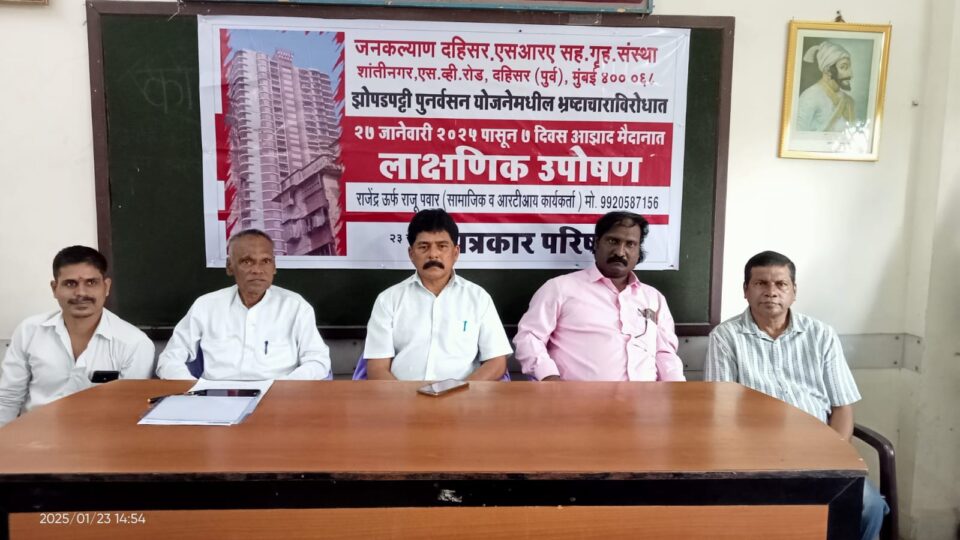 जनकल्याण दहिसर एसआरए सहकारी गृह संस्थेतील झोपडपट्टी पुनर्वसन योजनेतील भ्रष्टाचाराविरोधात २७ जानेवारीपासून उपोषण करणार