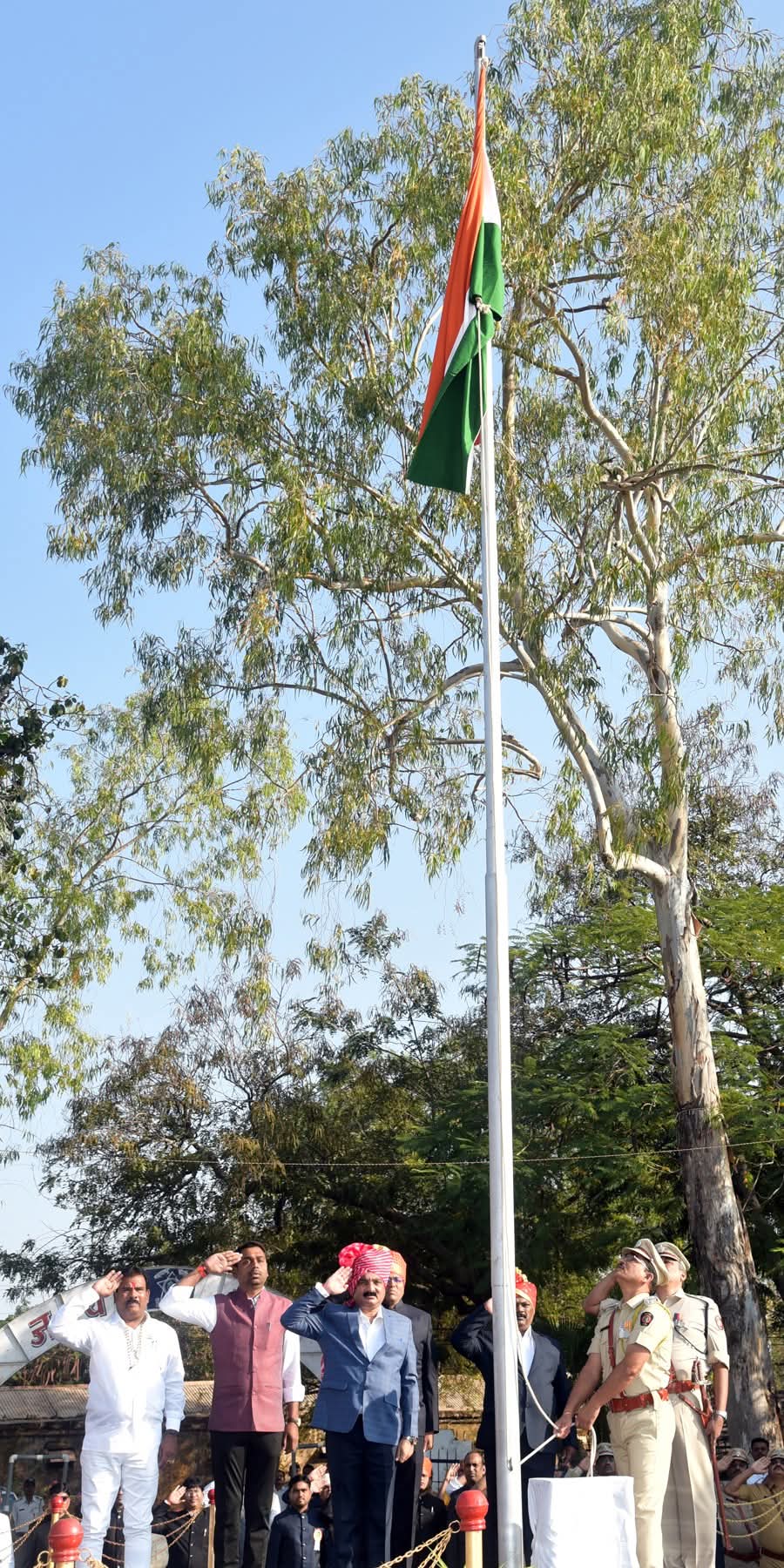 देशाच्या 76 व्या प्रजासत्ताक दिनानिमित्त पोलीस कवायत मैदानात पालकमंत्री ना. पाटील यांच्या हस्ते मुख्य शासकीय ध्वजारोहण करण्यात आले. याप्रसंगी संबोधित करताना ते बोलत होते. यावेळी आमदार संजय गायकवाड, मनोज कायंदे, जिल्हाधिकारी डॉ. किरण पाटील, पोलीस अधीक्षक विश्व पानसरे, मुख्य कार्यकारी अधिकारी गुलाबराव खरात, अपर जिल्हाधिकारी सदाशिव शेलार यांच्यासह प्रशासनातील अधिकारी, विभाग प्रमुख, स्वातंत्र सेनानी, वीरमाता, वीरपत्नी, ज्येष्ठ नागरिक, शाळा व महाविद्यालयातील विद्यार्थी आणि नागरिक मोठ्या संख्येने उपस्थित होते.