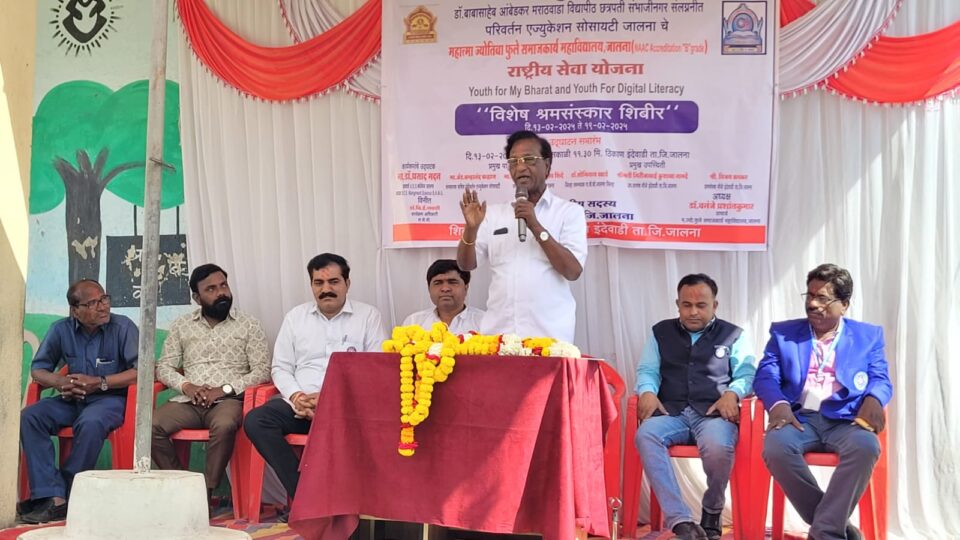 जालना तालुक्यातील इंदेवाडी येथे महात्मा फुले समाजकार्य महाविद्यालयाच्या राष्ट्रीय सेवा योजनेच्या 7 दिवसीय शिबीराचे उद्घाटन गुरुवार दि. 13 फेब्रुवारी 2025 रोजी पार पडले. यावेळी ते बोलत होते. या शिबीराचे उद्घाटन प्राचार्य डॉ. प्रसाद मदन यांच्या हस्ते करण्यात आले. यावेळी कार्यक्रमाच्या अध्यक्षस्थानी प्राचार्य डॉ. प्रशांतकुमार वनंजे यांची तर प्रमुख पाहुणे म्हणून राष्ट्रीय सेवा योजनेचे जिल्हा समन्वयक डॉ. सोमीनाथ खाडे, बद्रीनाथ गोंगे, सरपंच लक्ष्मी सर्जेराव शिंदे, उप सरपंच गिरीजाबाई नामदे, सदस्य सुमित वाघमारे, सिरसाट यांची उपस्थिती होती.