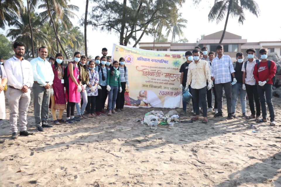 अलिबागमध्ये शिवजयंतीनिमित्त समुद्र किनारा स्वच्छता मोहीम..