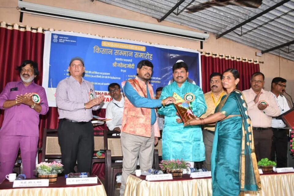 शेतकरी सन्मान निधी चे देशभरातील 9.8 कोटी शेतकऱ्यांच्या खात्यात 22 हजार कोटी जमा करण्यात आले.मागील 2019 पासून ही शेतकरी सन्मान निधी योजना सुरू असून आता पर्यंत अव्याहतपणे सर्व हप्ते शेतकऱ्यांना मिळाले आहेत.शेतकऱ्यांना वर्षाला मिळणारे 6 हजार रुपये ही शेतकऱ्यांसाठी मौलिक मदत ठरत आहे.या पीएम शेतकरी सन्मान निधीचा महिला शेतकरी ही मोठ्या प्रमाणात लाभ घेत आहेत.प्रधानमंत्री नरेंद्र मोदी हे शेतकऱ्यांच्या पाठीशी उभे आहेत असा विश्वास ना.रामदास आठवले यांनी व्यक्त केला.