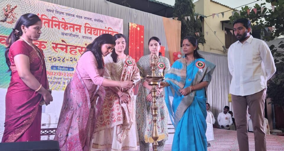 जालना, (प्रतिनिधी)-शहरातील संभाजीनगर प्रभागातील समर्थ शिक्षण प्रसारक मंडळ संचलित शांतिनिकेतन विद्यामंदिर या शाळेचे दोन दिवसीय वार्षिक स्नेहसंमेलन मंगळवार रोजी संपन्न झाले. कार्यक्रमाचे उद्घाटन जिल्हाधिकारी यांच्या सुविद्य पत्नी अश्विनी श्रीकृष्ण पांचाळ यांच्या हस्ते करण्यात आले.यावेळी व्यासपीठावर पोलीस अधीक्षक यांच्या सुविद्य पत्नी निधी अजय कुमार