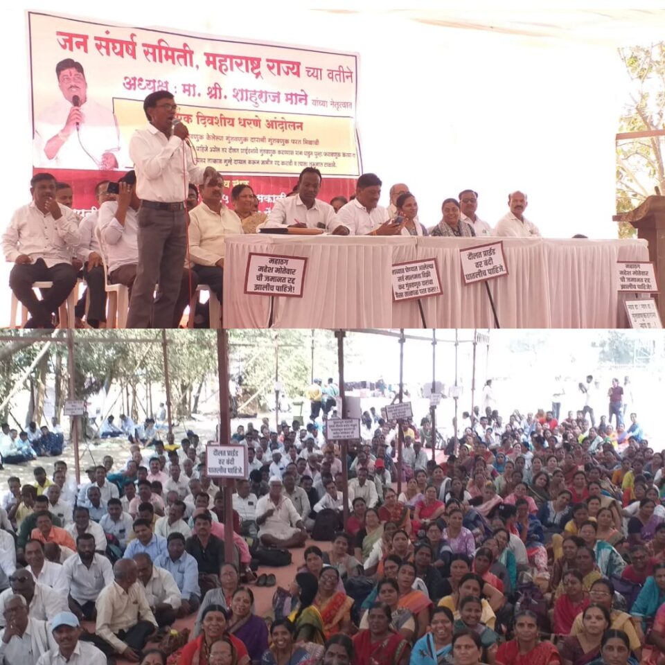 ( सुरेश गायकवाड ) प्रतिनिधी मुंबई- मुंबईच्या आझाद मैदानावर जनसंघर्ष समितीचे अध्यक्ष शाहूराज माने यांच्या नेतृत्वाखाली हजारो आंदोलकांच्या वतीने एक दिवसीय धरणे आंदोलन करण्यात आले. त्या आंदोलकांमध्ये पुरुष आंदोलका सहित महिलां आंदोलकांचा सहभाग मोठेप्रमाणात होता.