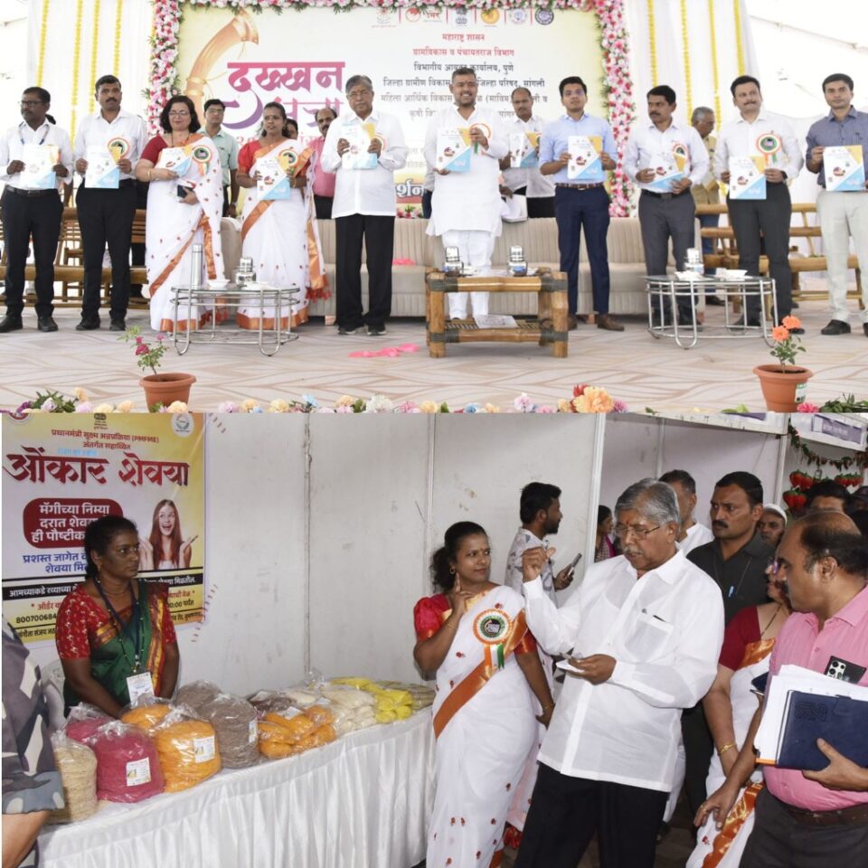राज्य प्रतिनिधी: दख्खन जत्रेच्या माध्यमातून स्वयंसहाय्यता बचत गटांतील महिलांच्या उत्पादनांना हक्काची बाजारपेठ मिळाली असून, या माध्यमातून स्वयंसहाय्यता बचत गटाच्या महिलांना आर्थिकदृष्ट्या स्वावलंबी होण्यास प्रोत्साहन मिळणार असल्याचे प्रतिपादन राज्याचे उच्च व तंत्रशिक्षण मंत्री, संसदीय कार्य मंत्री तथा सांगली जिल्ह्याचे पालकमंत्री चंद्रकांत पाटील यांनी आज येथे केले. दख्खन जत्रा 2025 अंतर्गत महिला स्वयंसहाय्यता बचत गटांच्या वस्तुंचे व ग्रामीण भागातील शेतकरी उत्पादनांच्या विभागस्तरीय प्रदर्शन व विक्री महोत्सवाच्या उद्घाटन कार्यक्रमाच्या अध्यक्षस्थानावरून ते बोलत होते. डॉ. बाबासाहेब आंबेडकर स्टेडियम, सांगली येथील मैदानावर आयोजित या कार्यक्रमास खासदार विशाल पाटील, जिल्हा परिषदेच्या मुख्य कार्यकारी अधिकारी तृप्ती धोडमिसे, महानगरपालिका आयुक्त शुभम गुप्ता, जिल्हा ग्रामीण विकास यंत्रणेच्या प्रकल्प संचालक नंदिनी घाणेकर, विभागीय आयुक्त कार्यालयाचे उपायुक्त (विकास) विजय मुळीक आदि मान्यवर व्यासपीठावर उपस्थित होते.
