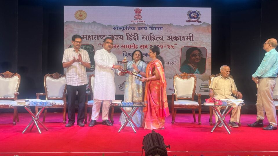 रेखा बैजल यांना हिंदी साहित्य अकादमी पुरस्कार50 हजाराचा धनादेश आणि शाल-श्रीफळ देवून सन्मान..