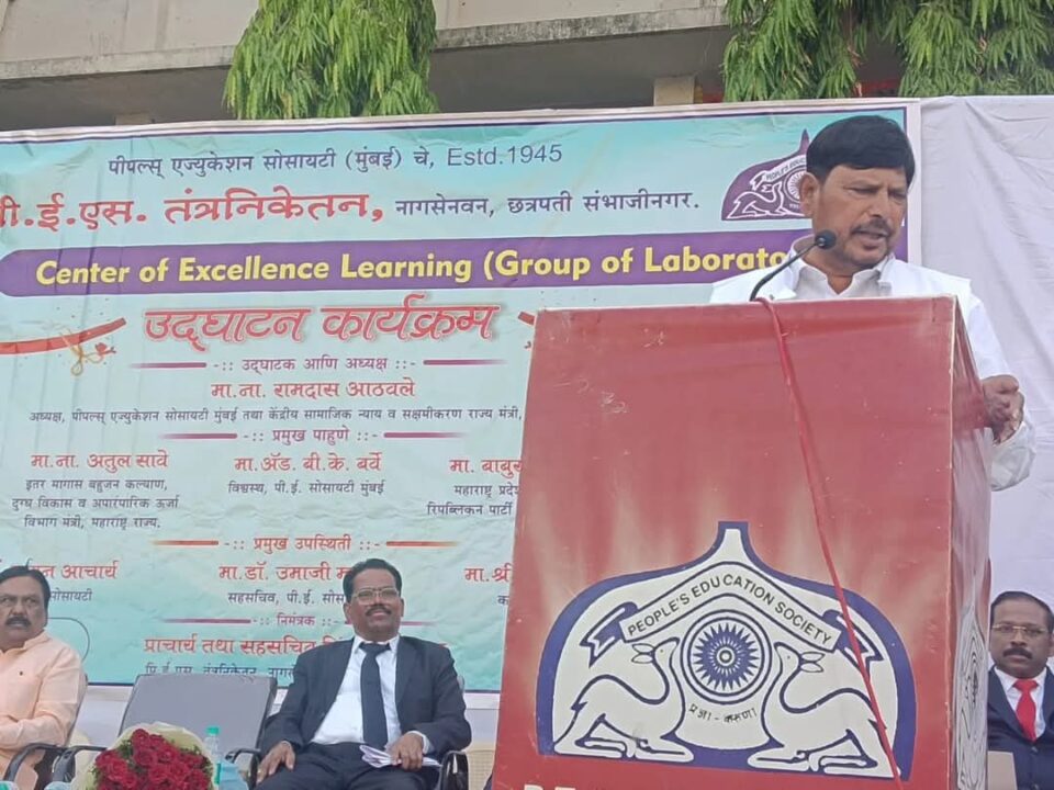 छत्रपती संभाजी नगर येथे महामानव डॉ बाबासाहेब आंबेडकरांच्या पदस्पर्शाने पावन झालेल्या नागसेन वन या भागात पी ई एस पॉलिटेक्निक महाविद्यालयात सेंटर ऑफ एक्सलंस लर्निग चे उद्घाटन पीपल्स एज्युकेशन सोसायटीचे अधिकृत चेअरमन म्हणून ना.रामदास आठवले यांच्या हस्ते करण्यात आले.या सेंटर मध्ये 100 संगणक संच उभारण्यात आले आहेत.यावेळी पी ई एस पॉलिटेक्निक चे प्रिन्सिपॉल प्राचार्य त्र्यंबक कदम; रिपब्लिकन पक्षाचे राज्य कार्याध्यक्ष बाबूराव कदम; मिलिंद शेळके; पी ई एस चे विश्वस्त ऍड बी के बर्वे; वामन आचार्य; यू एम मस्के; चंद्रशेखर कांबळे ; विजय मगरे; नागराज गायकवाड बाळकृष्ण इंगळे