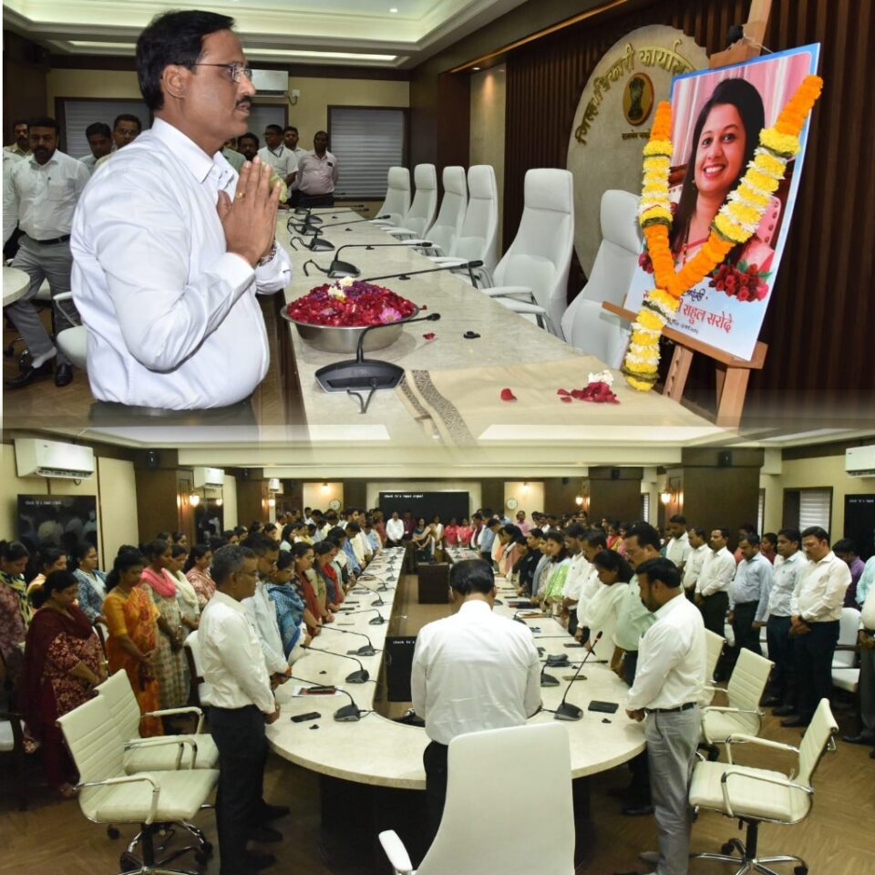 ठाणे, प्रतिनिधी- स्थळ: जिल्हाधिकारी कार्यालयाच्या पाचव्या मजल्यावरील समिती सभागृह… वेळ: सायंकाळी 5.30 वा… संपूर्ण सभागृह नि:शब्द… सभागृहातील प्रत्येक अधिकारी-कर्मचारी दु:खी चेहऱ्याने स्व.पल्लवी सरोदे यांच्या प्रतिमेकडे पाहत आपल्या आठवणींना उजाळा देत होते.प्रसंग होता महसूल कर्मचारी संघटनेच्या वतीने आज जिल्हाधिकारी कार्यालयातील समिती सभागृह येथे स्व.पल्लवी सरोदे यांच्या शोकसभेचे आयोजनाचा…ठाणे जिल्हाधिकारी कार्यालयातील सहाय्यक महसूल अधिकारी तथा जिल्हाधिकारी महोदयांच्या स्वीय सहाय्यक या पदावर कार्यरत असणाऱ्या स्व.पल्लवी सरोदे (वय 37 वर्ष) यांचे काल (दि.23 मार्च) हरिहरेश्वर समुद्रकिनाऱ्यावर अपघाती निधन झाले. या पार्श्वभूमीवर स्व.पल्लवी सरोदे यांच्या शोकसभेचे आयोजन करण्यात आले होते.