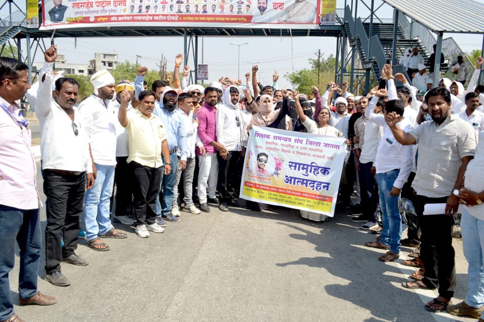 तसेच दिनांक पाच मार्च 2025 पासून आझाद मैदान मुंबई येथे शिक्षक समन्वय संघाच्या वतीने आंदोलन सुद्धा 14 ऑक्टोंबर 2024 च्या शासन निर्णयाची अंमलबजावणी तात्काळ व्हावी याकरता सुरू असून या आंदोलनाची दखल सरकारने न घेतल्यामुळे शेवटचा पर्याय म्हणून जालना जिल्ह्यातील 500 शिक्षकांनी सामूहिक आत्मदहनाचा निर्णय घेतला आहे या निर्णयावर दिनांक 24 मार्च 2025 पर्यंत शासनाने काहीतरी निर्णय करावा नसता दिनांक 25 मार्च 2025 चे सामूहिक आत्मदहन आंदोलन अटळ असल्याचे या शिक्षकांनी म्हटलेले आहे