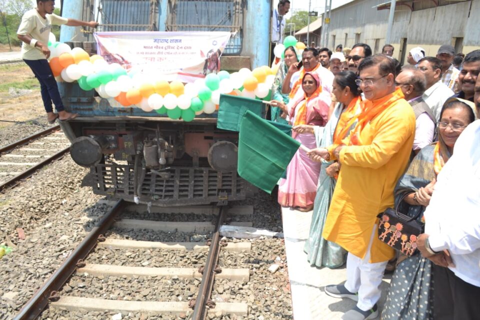 राज्य प्रतिनिधी- : राज्य शासनाच्या मुख्यमंत्री तीर्थदर्शन योजनेतंर्गत विशेष रेल्वे गाडी  जिल्ह्यातील आठशे भाविकांना घेऊन अयोध्येच्या दिशेने जय श्री राम”च्या गजरात रवाना झाली. राज्याचे पणन व राजशिष्टाचार मंत्री तथा धुळे जिल्ह्याचे पालकमंत्री जयकुमार रावल यांनी या विशेष रेल्वेला हिरवा झेंडा दाखवून यात्रेची सुरुवात केली.