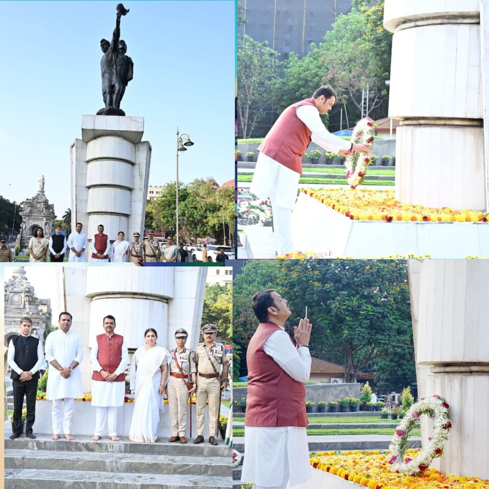 मुख्यमंत्री देवेंद्र फडणवीस यांनी महाराष्ट्र दिनानिमित्त संयुक्त महाराष्ट्राच्या आंदोलनात प्राणांची आहुती देणाऱ्या हुतात्म्यांना हुतात्मा चौक स्मारक, मुंबई येथे पुष्पचक्र अर्पण करुन विनम्र अभिवादन केले.