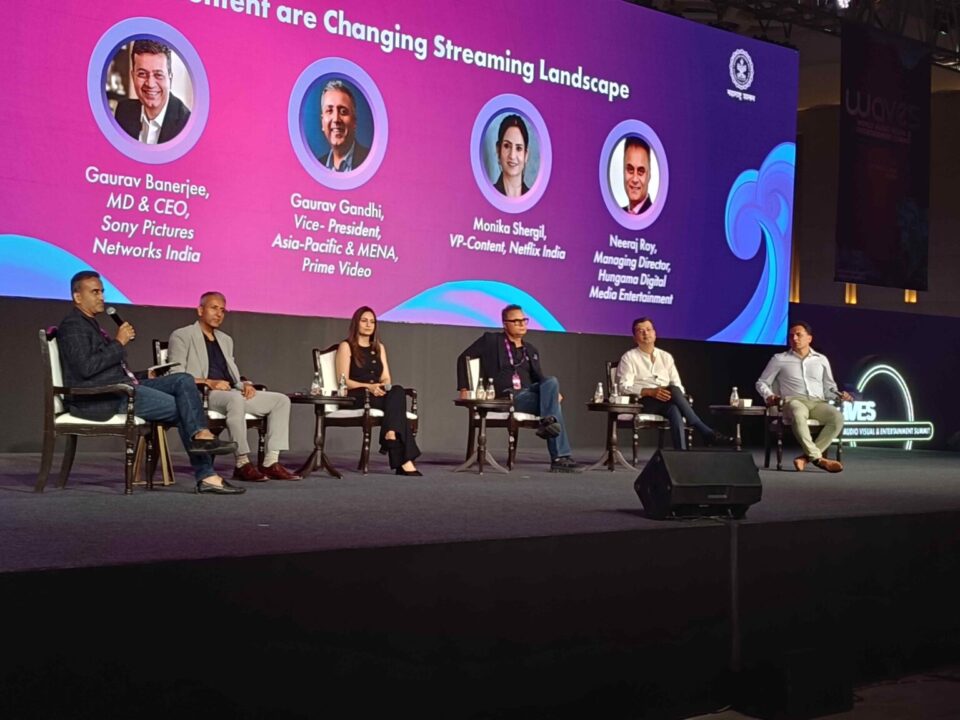 जिओ वर्ल्ड सेंटर येथील जागतिक दृकश्राव्य आणि मनोरंजन शिखर परिषद – २०२५ मध्ये ‘ओटीटी रिव्होल्युशन: हाऊ एआय, पर्सनलायझेशन अँड इंट्रॅक्टिव कंटेंट अ चेंजिंग स्ट्रीमिंग लॅन्डस्केप’ या विषयावर परिसंवाद झाला. यावेळी लायनस्गेट प्ले एशियाचे अध्यक्ष रोहित जैन यांच्या सूत्रसंचालनाखाली झालेल्या या चर्चेत जिओ हॉटस्टारचे चीफ प्रोडक्ट ऑफिसर भरत राम, सोनी पिक्चर्स नेटवर्क्स इंडियाचे व्यवस्थापकीय संचालक आणि मुख्य कार्यकारी अधिकारी गौरव बॅनर्जी, नेटफ्लिएक्स इंडियाचे उपाध्यक्ष (कन्टेन्ट) मोनिका शेरगिल, एशिया पॅसिफिक आणि मिनी प्राइम व्हिडिओचे उपाध्यक्ष गौरव गांधी, हंगामा डिजिटल मीडिया एंटरटेनमेंट लिमिटचे व्यवस्थापकीय संचालक नीरज रॉय यांनी सहभाग घेतला.