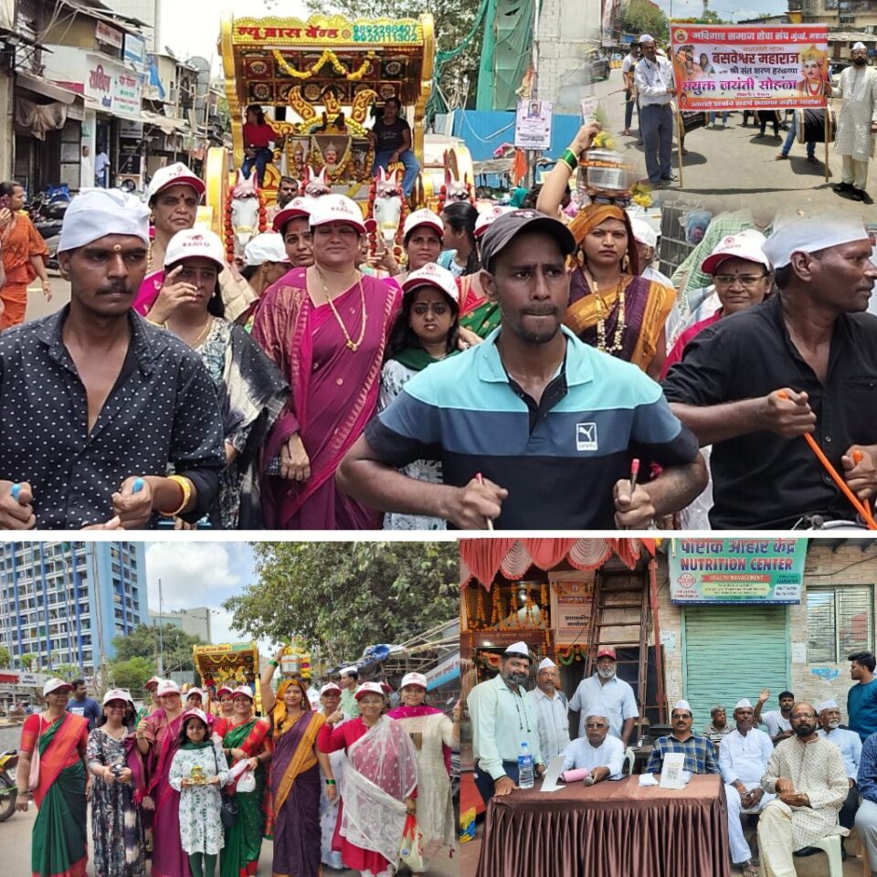 मुंबई प्रतिनिधी-धारावी विभागात श्री जगत ज्योती महात्मा बसवेश्वर महाराज आणि श्री शरण हरळय्या यांची संयुक्त जयंती सालाबादाप्रमाणे याही वर्षी मचिगार समाज सेवा संघ यांनी श्री जगत ज्योती महात्मा बसवेश्वर महाराज आणि श्री शरण हरळय्या यांची भव्य शुभ यात्रा यांचे आयोजन केले होते सदर यात्रेचा प्रारंभ धारावी अशोक मिल कंपाउंड येथून सुरू करून वाजत गाजत ढोल ताशा ने यात्रा परिपूर्ण करून पुन्हा अशोक मिल येथील समाज कार्यालयाजवळ मंदिराजवळ यात्रा संपन्न करण्यात आली यावेळी मोठ्या संख्येने सहभागी झालेल्या बांधवांनी महाप्रसाद घेऊन आनंद व्यक्त केला