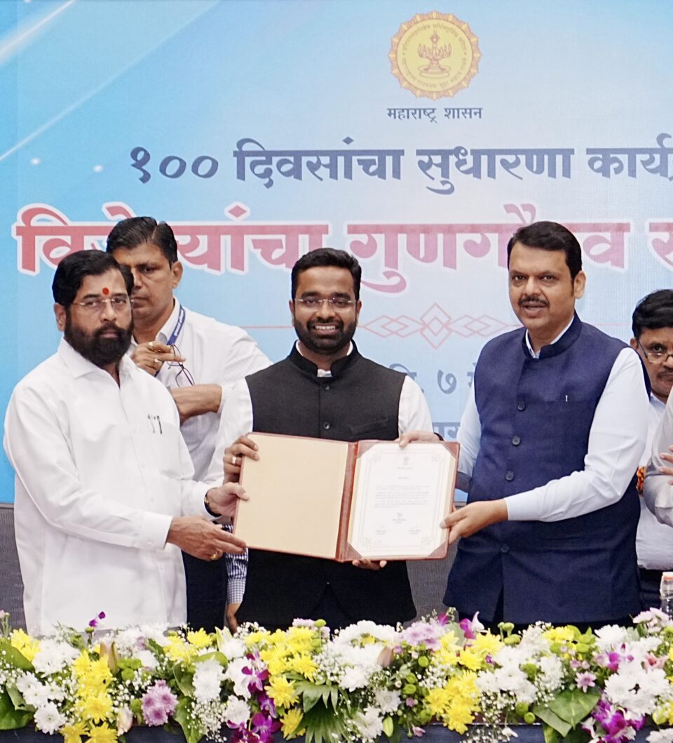 ठाणे प्रतिनिधी (जिल्हा परिषद, ठाणे) – महाराष्ट्र शासन व भारतीय गुणवत्तापरिषद (QCI) यांच्या संयुक्त विद्यमाने राबविण्यात आलेल्या ‘कार्यालयीन मूल्यमापन – १०० दिवसांचा कृती कार्यक्रम’ अंतर्गत जिल्हा परिषद, ठाणे यांनी संपूर्ण राज्यातून प्रथम क्रमांक मिळवत एक गौरवशाली यश संपादन केले आहे. या उल्लेखनीय कामगिरीबद्दल आज, दि. ०७ मे, २०२५ रोजी मुख्यमंत्री देवेंद्र फडणवीस व उपमुख्यमंत्री एकनाथ शिंदे यांच्या हस्ते प्रशस्तीपत्र वितरण सोहळ्यात मुख्य कार्यकारी अधिकारी रोहन घुगे यांना मंत्रीमंडळ सभागृह, मंत्रालय, मुंबई येथे प्रशस्तीपत्र प्रदान करून गौरवण्यात आले.