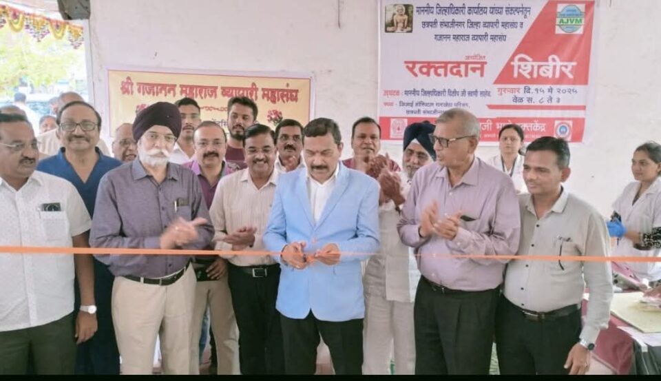जिल्हा प्रशासनाने केलेल्या आवाहनाला प्रतिसाद देत जिल्हा व्यापारी महासंघ तसेच गजानन महाराज व्यापारी महासंघ यांच्या वतीने आज रक्तदान शिबिराचे आयोजन करण्यात आले. शिबिराचे उद्घाटन जिल्हाधिकारी दिलीप स्वामी यांच्या हस्ते करण्यात आले. याप्रसंगी निवासी उपजिल्हाधिकारी विनोद खीरोळकर, जिल्हा आपत्ती व्यवस्थापन अधिकारी मारोती मस्के, डॉ.महेश लड्डा तसेच व्यापारी महासंघाचे पदाधिकारी उपस्थित होते. याप्रसंगी बोलताना जिल्हाधिकारी स्वामी यांनी रक्तदान, जलपुनर्भरण व वृक्षरोपण करण्याचे आवाहन केले. या कार्यक्रमासाठी, जिल्हा व्यापारी महासंघ अध्यक्ष संजय कांकरिया, महाराष्ट्र चेंबर उपाध्यक्ष प्रफुल मालानी, कॅट वरिष्ठ उपाध्यक्ष अजय भाई शहा, मराठवाडा चेंबरचे अध्यक्ष आदेशपाल सिंग छाबडा, उपाध्यक्ष लक्ष्मीनारायण राठी, वरिष्ठ मार्गदर्शक जिल्हा व्यापारी महासंघ सरदार हरी सिंग, पंकज लोया, संतोष कावळे, विकास सावजी, शिवशंकर स्वामी, जयंत देवळानकर, अनंत जयस्वाल, नितीन बारपांडे, अनंत फुलवाडकर, चंदनभाऊ काहीटे, पुनिया, सोनवणे, नामदेव वेताळ, नरेंद्र खोमणे, गंगाधर कोठारी, व अन्य व्यापारी उपस्थित होते. कार्यक्रमाचे सूत्रसंचालन शिवशंकर स्वामी व जयंत देवळाणकर यांनी केले.