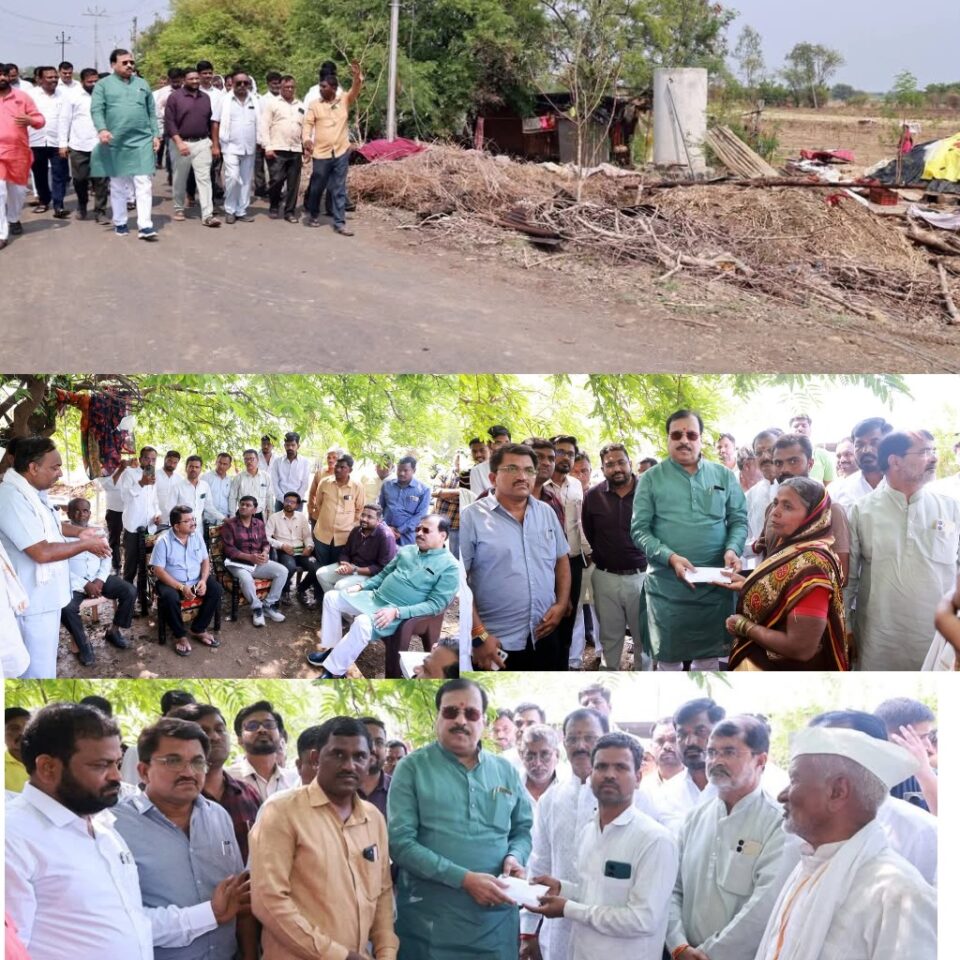 रेणापूर तालुक्यातील काही भागात रविवारी सायंकाळी विजेच्या कडकडाटासह वादळ वाऱ्या होऊन अवकाळी जोरदार पाऊस झाला. गारांचाही सडाका पडला यामुळे अनेक ठिकाणी विजेच्या तारा तुटल्या, पोल तुटून पडले, डिपी उध्वस्त झाल्या, पत्रे उडाली, गव्हाण येथे अनेक घरांचे मोठे नुकसान झाले, इंदरठाणा येथे शेतात वीज पडून शेतगड्याचा दुर्दैवी अंत झाला. सदरील नुकसानीची माहिती मिळाल्याने लातूर ग्रामीणचे आमदार श्री रमेशआप्पा कराड यांनी सोमवारी दुपारी नुकसानग्रस्त भागाची पाहणी केली. यावेळी त्यांच्या समवेत भाजपा किसान मोर्चाचे प्रदेश उपाध्यक्ष विक्रमकाका शिंदे, पंचायतराज सेल जिल्हा संयोजक नवनाथ भोसले, मंडल अध्यक्ष शरद दरेकर, सतीश आंबेकर, दशरथ सरवदे, अभिषेक अकनगिरे, श्रीकृष्ण पवार यांच्यासह अधिकारी कर्मचारी होते.