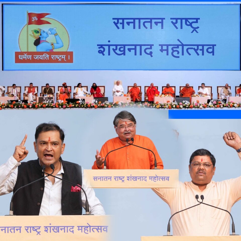 *हिंदू बलशाली होण्याकडे दुर्लक्ष केल्यानेच देशाचे अवमूल्यन !* – रणजित सावरकर ‘हिंदूंचे राजनितीकीकरण आणि राजनीतीचे सैनिकीकरण होणे आवश्यक आहे. हिंदू बलशाली व्हायला हवेत. स्वातंत्र्यानंतर देशात सत्तेवर आलेल्या सरकारने याकडे लक्ष दिले नाही. त्यामुळे देशाचे अवमूल्यन झाले. त्या काळात सनातन संस्थेचे संस्थापक सच्चिदानंद परब्रह्म डॉ. जयंत आठवले यांनी हिंदूंच्या संघटनाला प्रारंभ केला. सनातनच्या गोवा येथील आश्रमात आल्यावर मला सच्चिदानंद परब्रह्म डॉ. आठवले यांच्या आध्यात्मिक कार्याची प्रचिती आली. सच्चिदानंद परब्रह्म डॉ. आठवले असे एकमात्र व्यक्ती आहेत, जे राष्ट्राला दिशा देण्यासाठी कार्य करत आहेत. हिंदूंना बळशाली करण्यासाठी कार्य करणारे सच्चिदानंद परब्रह्म डॉ. आठवले करत आहेत, असे स्वातंत्र्यवीर सावरकर राष्ट्रीय स्मारकाचे कार्याध्यक्ष श्री. रणजित सावरकर यांनी या वेळी म्हटले. या वेळी श्री. सुनील घनवट म्हणाले, ‘‘हिंदूंना धर्मशिक्षण प्राप्त व्हावे, यासाठी हिंदु जनजागृती समितीने धर्मशिक्षणवर्ग चालू केले. सद्यस्थितीत देशात समितीच्या वतीने ५०० ठिकाणी धर्मशिक्षणवर्ग चालू आहेत. समितीने समाजाला दिशा देण्याचे कार्य केले आहे.’’ सनातन संस्थेचे सद्गुरु नंदकुमार जाधव म्हणाले, ‘‘सच्चिदानंद परब्रह्म डॉ. आठवले यांनी साधकांना मार्गदर्शन करून जगभर अध्यात्मप्रसार केला आहे. तसेच नृत्य, गायन, संगीत याद्वारे अध्यात्मिक प्रगती कशी करायची याचे मार्गदर्शन त्यांनी केले.’’ पंजाब गोरक्षक दलाचे संस्थापक अध्यक्ष श्री. सतीश प्रधान म्हणाले की, महाराष्ट्रात गोमातेला राज्यमातेचा दर्जा देण्यात आला, त्याप्रमाणे हिंदूंच्या आस्थेचा विचार करून सनातन राष्ट्र शंखनाद महोत्सवाच्या निमित्ताने गोवा सरकारनेही गोमातेला राज्यमातेचा दर्जा द्यावा. *श्री. अभय वर्तक,* प्रवक्ते, सनातन संस्था.