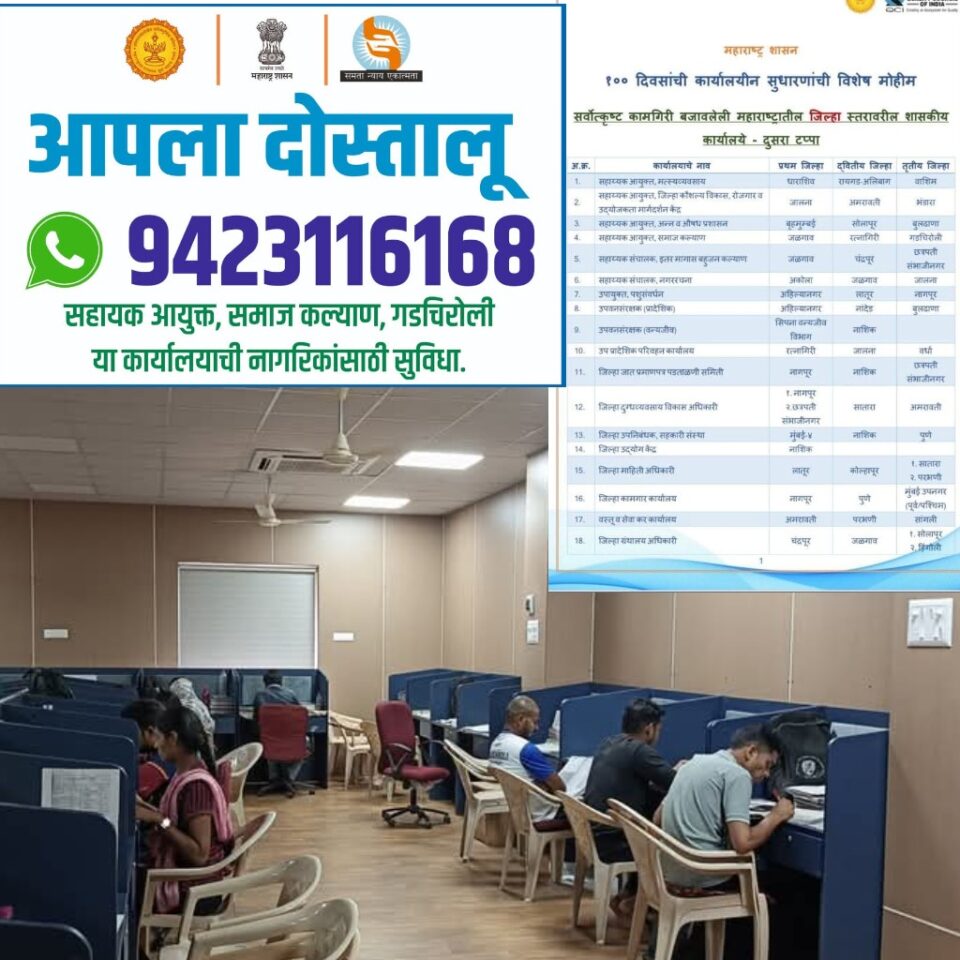 १०० दिवसांच्या सुधारणा मोहिमेत गडचिरोलीच्या सामाजिक न्याय विभाग राज्यात तिसरा