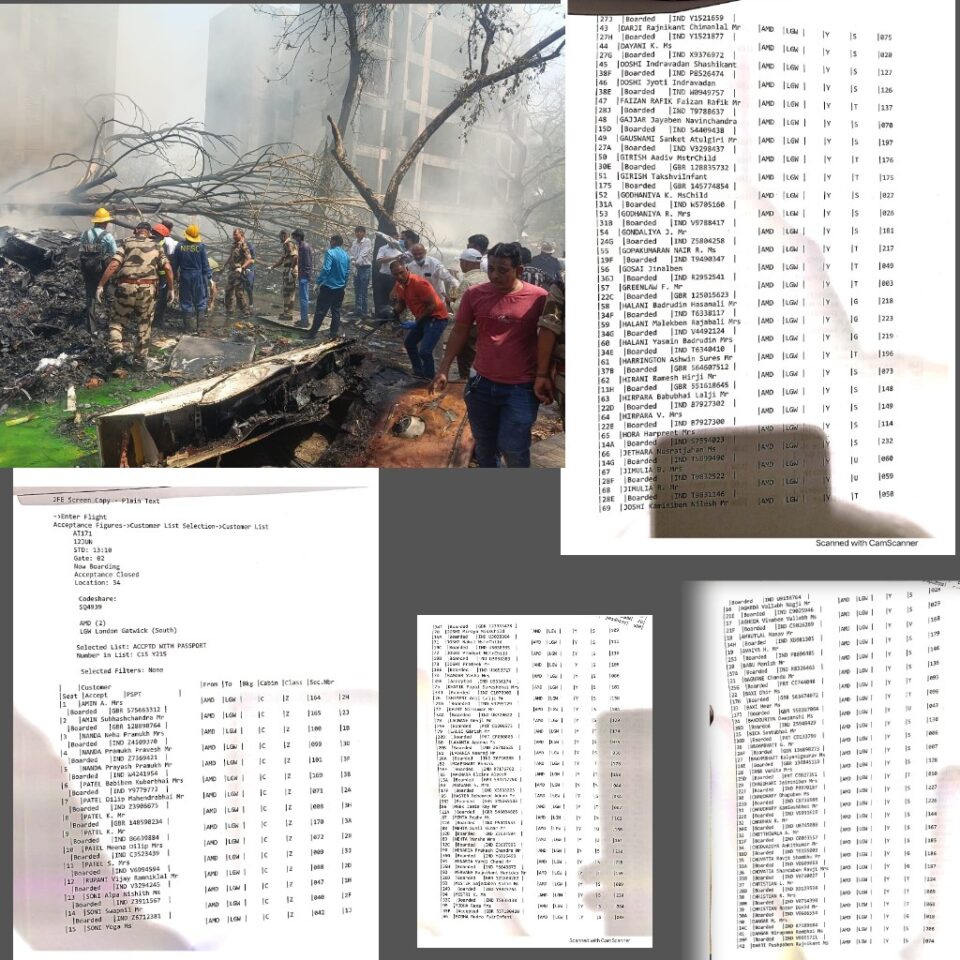 अहमदाबादमध्ये एअर इंडियाच्या विमान अपघाताच्या ठिकाणी मदत आणि बचावकार्य सुरू आहे,दुर्घटनाग्रस्त विमानातून प्रवास करणाऱ्या प्रवाशांची यादी समोर आलेली आहे
