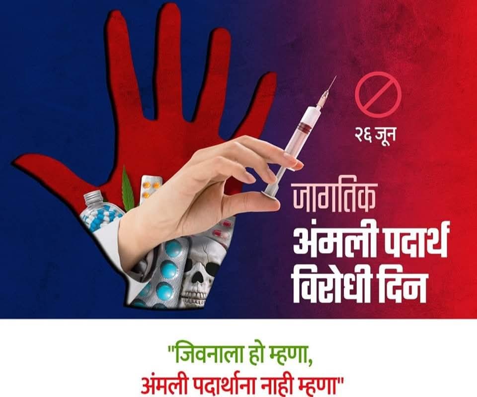 दिनांक 26 जून हा जागतिक अमली पदार्थ विरोधी दिन म्हणून साजरा केला जातो… अमली पदार्थास नकार, भावी पिढीस आकार–
