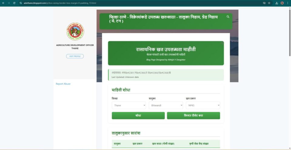 “खते कुठे उपलब्ध?”आता शेतकऱ्यांना घरबसल्या मिळणार दैनंदिन माहितीजिल्हा परिषद, ठाणे कृषि विभागाचा अभिनव उपक्रम; Blogspot द्वारे खत साठा व उपलब्धतेची माहिती ऑनलाईन..