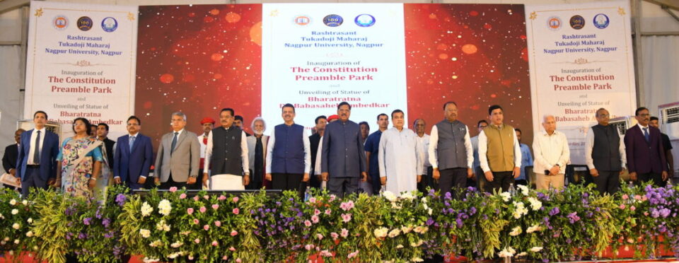 नागपूर, प्रतिनिधी: भारतरत्न डॉ. बाबासाहेब आंबेडकर यांनी जागतिक मूल्य आणि भारतीय शाश्वत मूल्य यांची उत्तम सांगड घालत भारतीय संविधानाची निर्मिती केली असून उद्देशिका हा संविधानाचा गाभा आहे. उद्देशिकेतील मूल्यांचा अंगीकार देशातील नागरिकांनी करावा त्यामुळे देशातील ९० टक्के प्रश्न कायमचे सुटतील, असे प्रतिपादन मुख्यमंत्री देवेंद्र फडणवीस यांनी  येथे केले.राष्ट्रसंत तुकडोजी महाराज नागपूर विद्यापीठाच्या डॉ. बाबासाहेब आंबेडकर स्कूल ऑफ लॉच्या परिसरात संविधान उद्देशिका पार्क आणि डॉ. बाबासाहेब आंबेडकर यांच्या पूर्णाकृती पुतळ्याचे लोकार्पण सर्वोच्च न्यायालयाचे सरन्यायाधीश भूषण गवई, केंद्रीय रस्ते वाहतूक व महामार्ग मंत्री नितीन गडकरी आणि मुख्यमंत्री देवेंद्र फडणवीस यांच्या हस्ते झाले, त्यावेळी ते बोलत होते. यावेळी महसूल मंत्री तथा पालकमंत्री चंद्रशेखर बावनकुळे, सामाजिक न्याय मंत्री संजय शिरसाट, विधी व न्याय राज्यमंत्री ॲड. आशिष जयस्वाल, सामाजिक न्याय विभागाचे प्रमुख सचिव हर्षदीप कांबळे, उच्च न्यायालयाच्या नागपूर खंडपीठाचे प्रशासकीय न्यायमूर्ती नितीन सांबरे, माजी मंत्री नितीन राऊत, माजी खासदार जोगेंद्र कवाडे, राष्ट्रसंत तुकडोजी महाराज नागपूर विद्यापीठाच्या प्रभारी कुलगुरू डॉ. माधवी खोडे-चवरे, संविधान उद्देशिका पार्क समितीचे अध्यक्ष गिरीष गांधी आणि या समितीचे सदस्य उपस्थित होते