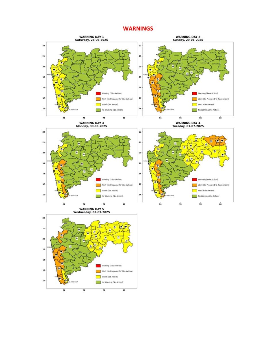 रायगड, रत्नागिरी, सिंधुदुर्ग जिल्ह्यांसह पुणे घाट आणि सातारा घाट परिसरात ऑरेंज अलर्ट कोकण किनारपट्टीला उंच लाटांचा इशारा