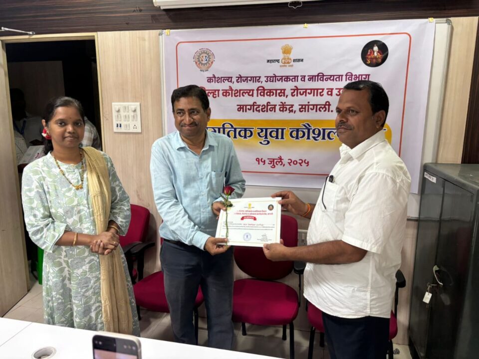 याअंतर्गत सन 2024-25 या आर्थिक वर्षात कौशल्य प्रशिक्षण कार्यक्रम राबविण्यासाठी बहुमूल्य योगदान दिलेल्या 24 प्रशिक्षण संस्थांचा गौरव करण्यात आला. आचार्य चाणक्य कौशल्य विकास केंद्र योजनेंतर्गत सहाभागी झालेले महाविद्यालय, ग्रामीण भागात कौशल्य प्रशिक्षण सुरु करणारे प्रमोद महाजन ग्रामीण कौशल्य विकास केंद्रे, तसेच किमान कौशल्य विकास कार्यक्रमांतर्गत सहभागी असलेली प्रशिक्षण संस्था यांना जिल्हा माहिती अधिकारी संप्रदा बीडकर तसेच जिल्हा कौशल्य विकास रोजगार व उद्योजकता मार्गदर्शन केंद्राचे सहायक आयुक्त द. क. देवळे यांच्या हस्ते प्रशस्तीपत्रक व पुष्पगुच्छ देऊन गौरव करण्यात आला. जागतिक युवा कौशल्य दिनानिमित्त विश्वासराव नाईक कला, वाणिज्य आणि बाबा नाईक महाविद्यालय येथे जिल्हा कौशल्य विकास रोजगार व उद्योजकता मार्गदर्शन केंद्राचे यंग प्रोफेशनल प्रवीण बनकर, समन्वयक धनंजय पाटील यांनी विद्यार्थ्यांसाठी करिअर मार्गदर्शन व कौशल्य प्रशिक्षण योजना, मुख्यमंत्री युवा कार्य प्रशिक्षण योजना, रोजगार मेळावा, महास्वयंम पोर्टल व एन.सी.एस पोर्टलवर उमेदवार नोंदणी व नोकरी शोध याबाबत माहिती दिली. या कार्यक्रमाचा 136 उमेदवारांनी लाभ घेतला.