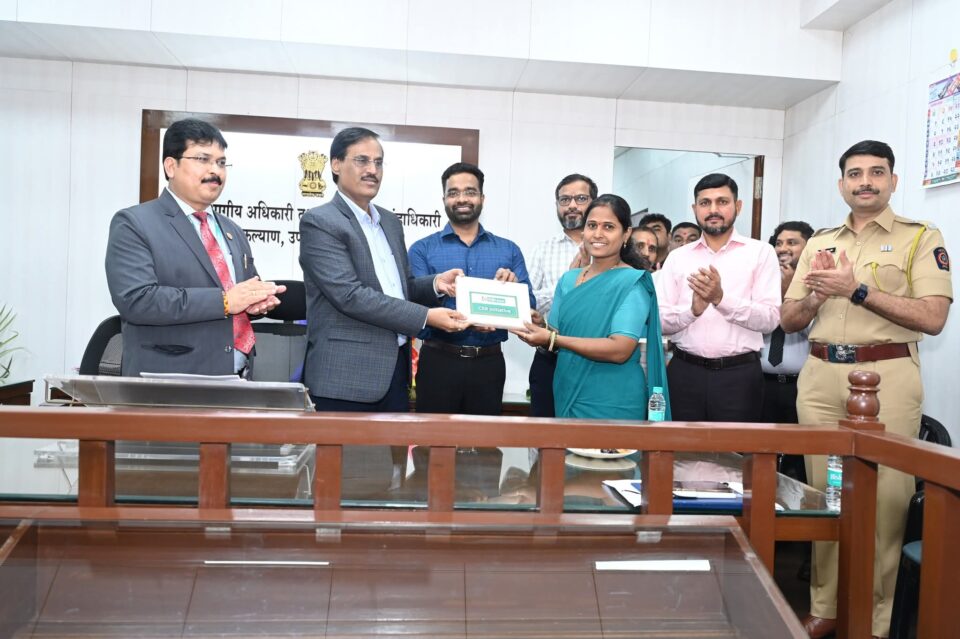 जिल्हाधिकारी अशोक शिनगारे यांच्या प्रमुख उपस्थितीत उपविभागीय  कार्यालयात आयडीबीआय बँकेच्या सीएसआर निधीतून कल्याण तालुक्यातील काही शाळा व शासकीय रुग्णालयांना संगणक, प्रिंटर्स व टॅब्सचे वाटप