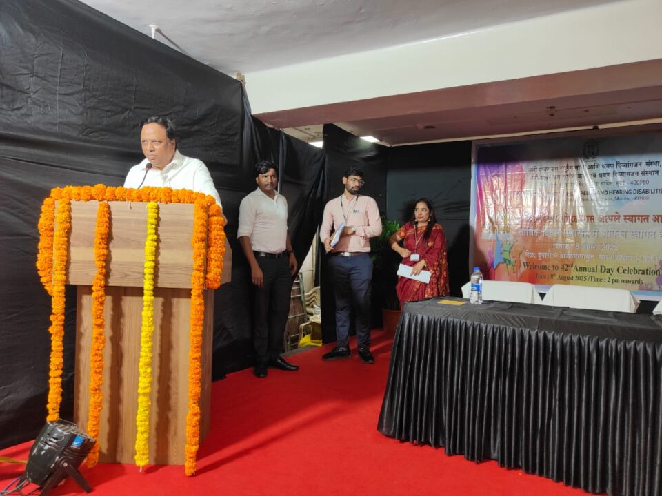 मुंबई प्रतिनिधी-मुंबईतील अली यावर जंग नॅशनल इन्स्टिट्यूट ऑफ स्पीच अँड हिअरिंग डिसएबिलिटीज [AYJNISHD(D)]या संस्थेने 8 ऑगस्ट 2025 रोजी आपला 42 वा वार्षिक महोत्सव मोठ्या उत्साहपूर्ण आणि समावेशक वातावरणात साजरा केला. सहभागी आणि उपस्थितांमध्ये अधिकारी, पाहुणे, विद्यार्थी, वाचा, भाषा आणि श्रवणदोष असलेल्या व्यक्ती आणि त्यांच्या कुटुंबियांचा समावेश होता