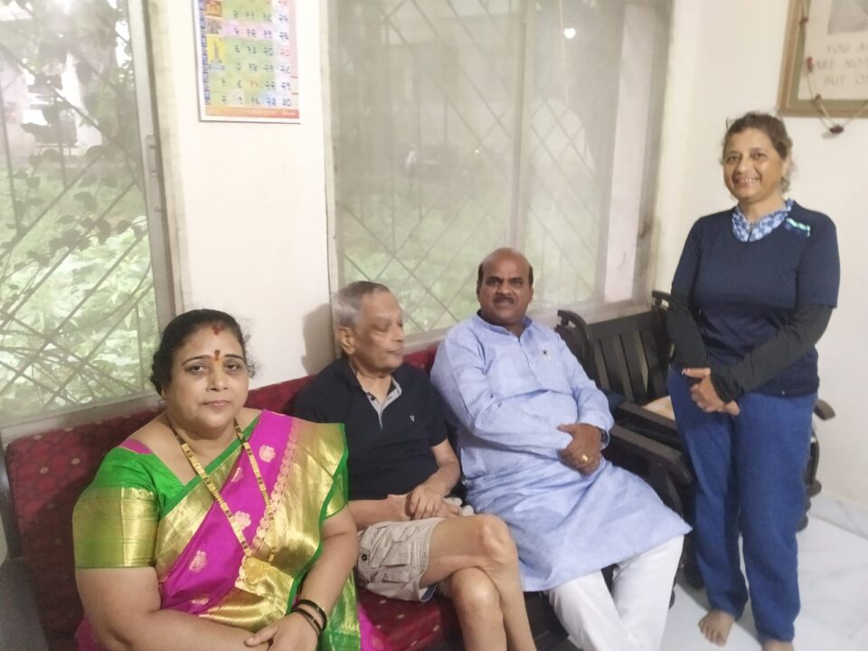 स्वर्गीय गुणाबाई गाडेकर यांचे पुत्र ज्येष्ठ नागरिक दिगंबर गाडेकर यांच्या राहत्या घरी पुणे येथे ज्येष्ठ समाजसेवक सामाजिक कार्यकर्ते दिलीप गाडेकर व पत्नी सौ वंदना दि गाडेकर आम्ही त्यांच्या निवासस्थानी भेट