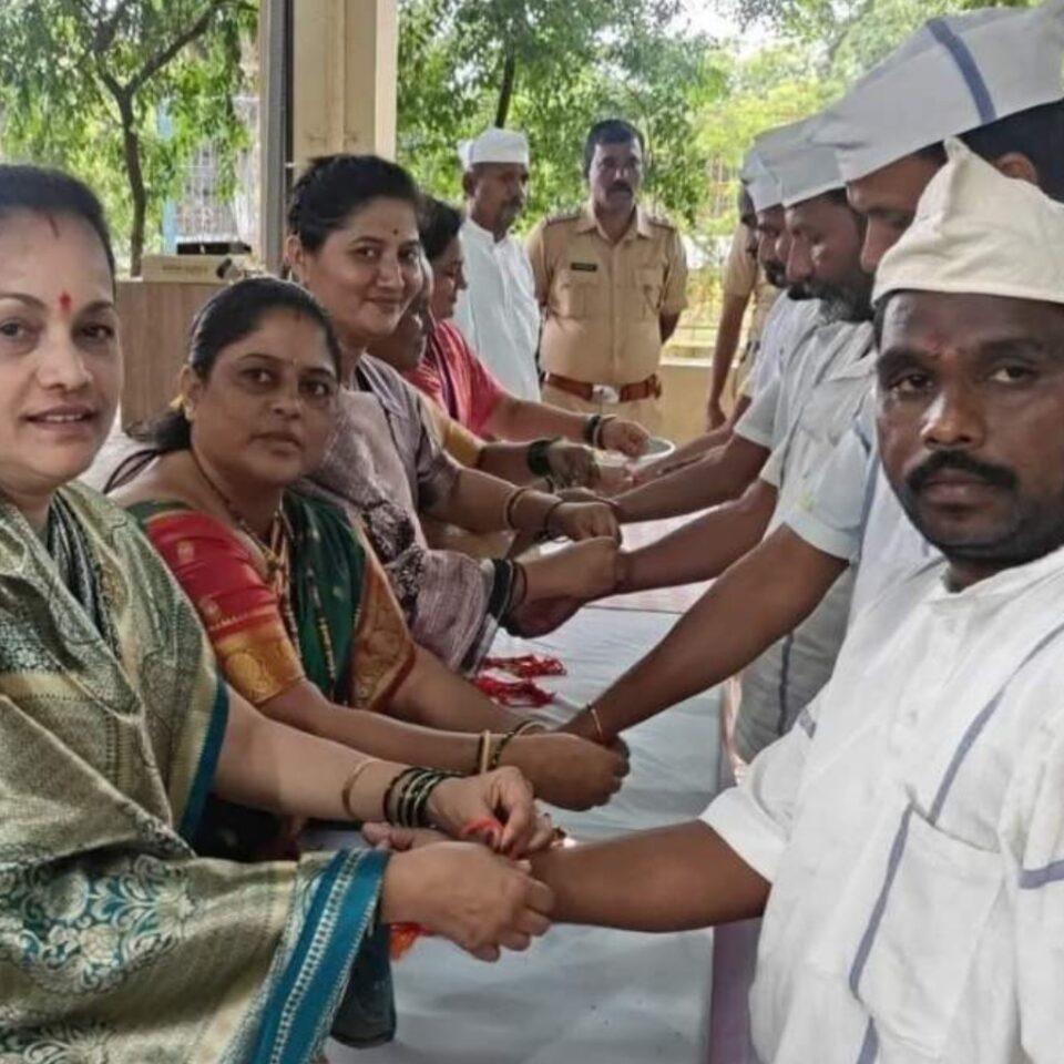 बुलडाणा, प्रतिनिधी : कारागृहात नातेवाईकांपासून दूर असलेल्या बंद्यांना सणाची उणीव भासू नये, तसेच आनंदी आणि खेळीमेळीचे वातावरण निर्माण व्हावे, या उद्देशाने महिला सदस्यांनी सर्व बंद्यांना व कारागृह कर्मचाऱ्यांना राखी बांधून रक्षाबंधन साजरे करण्यात आले.