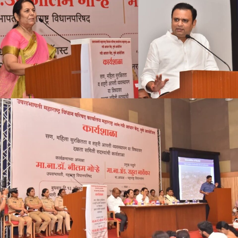 राज्य प्रतिनिधी-महिला सुरक्षितता, सणासुदीच्या काळातील कायदा व सुव्यवस्था आणि शहरातील आपत्ती व्यवस्थापन’ या विषयावरील विशेष कार्यशाळा मुंबईत पार पडली. कार्यशाळेस विधानसभा अध्यक्ष ॲड. राहुल नार्वेकर, विधानपरिषद उपसभापती डॉ. नीलम गोऱ्हे कार्यशाळेस प्रमुख पाहुणे म्हणून उपस्थित होते.