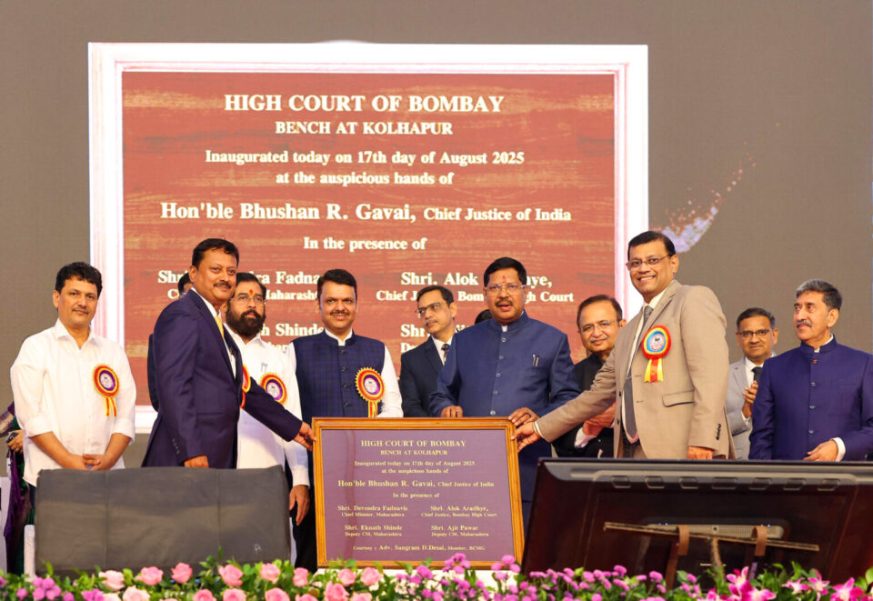 कोल्हापूर सर्किट बेंचचे खंडपीठात रूपांतर लवकरच होईल, त्यादृष्टीने मुंबई उच्च न्यायालयाचे मुख्य न्यायाधीश अलोक अराधे यांनी प्रयत्न करावेत, पायाभूत सुविधांसाठी मुख्यमंत्री तयार आहेत. सर्किट बेंचचे नियमित खंडपीठात रूपांतर होण्यासाठी जे काही लागणार आहे, त्याची पूर्तता उच्च न्यायालयाने लवकरात लवकर करावी, अशी सूचनाही त्यांनी यावेळी केली.मुंबई उच्च न्यायालयाच्या कोल्हापूर सर्किट बेंचच्या इमारतीच्या उद्घाटनानंतर कोल्हापूर येथे आज मेरी वेदर क्रीडांगणावर आयोजित कार्यक्रमात ते बोलत होते. या कार्यक्रमाला मुख्यमंत्री देवेंद्र फडणवीस, उपमुख्यमंत्री एकनाथ शिंदे, मुख्य न्यायाधीश आलोक आराधे, सार्वजनिक आरोग्य व कुटुंब कल्याण मंत्री तसेच पालकमंत्री प्रकाश आबिटकर, न्यायमूर्ती चंद्रशेखर, न्यायमूर्ती रेवती मोहिते-डेरे, न्यायमूर्ती एम. एस. कर्णिक, न्यायमूर्ती रविंद्र व्ही. घुगे, खासदार शाहू महाराज छत्रपती, ॲड. संग्राम देसाई (सदस्य, बार कौन्सिल महाराष्ट्र व गोवा), कोल्हापूर बार असोसिएशनचे अध्यक्ष ॲड. विजयराव पाटील, न्यायमूर्ती भारती डांगरे, न्यायमूर्ती मनीष पितळे, न्यायमूर्ती अनिल किलोर, न्यायमूर्ती शिवकुमार दिगे, न्यायमूर्ती शर्मिला देशमुख, न्यायमूर्ती गौतम ए. अंखड, न्यायमूर्ती एस. जी. चपळगावकर, न्यायमूर्ती शाम चांडक, राज्याचे ॲडव्होकेट जनरल डॉ. बिरेंद्र सराफ, अतिरिक्त सॉलिसिटर जनरल ऑफ इंडिया अनिल सी. सिंग, ॲडव्होकेट जनरल गोवा राज्य देविदास पंगम, बार कौन्सिल महाराष्ट्र व गोवाचे अमोल सावंत, बार कौन्सिल महाराष्ट्र व गोवा सदस्य ॲड. वसंतराव भोसले, ॲड. विवेकानंद घाटगे, अध्यक्ष, ॲडव्होकेट्स असोसिएशन ऑफ वेस्टर्न इंडिया ॲड. प्रशांत रेळेकर, बार कौन्सिल महाराष्ट्र व गोवा सदस्य ॲड. मिलिंद एस. थोबडे उपस्थित होते. याशिवाय राज्य