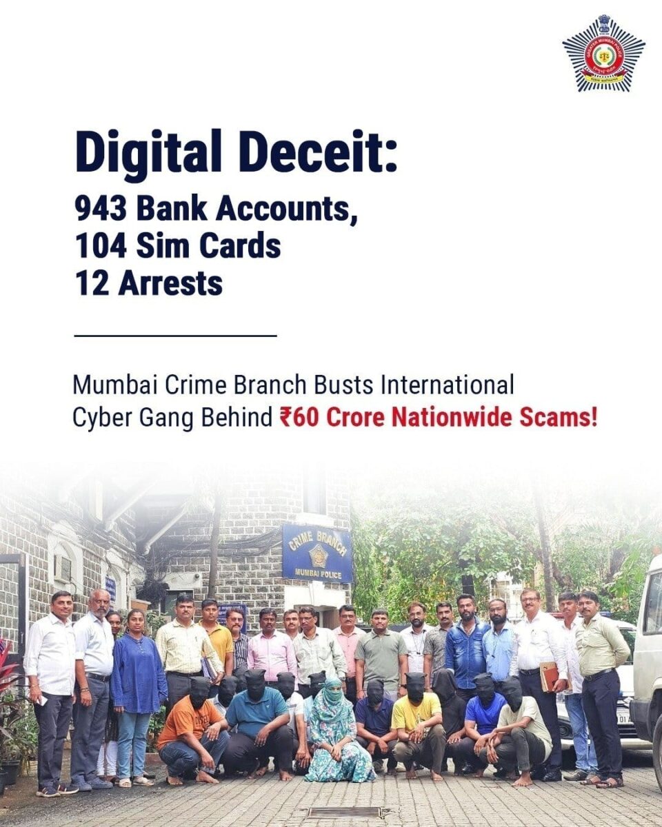 तपासात एकूण ९४३ बँक खाती वापरल्याचे समोर आले असून त्यापैकी १८१ खाती मुंबईत सायबर फसवणुकीसाठी सक्रिय असल्याचे निष्पन्न झाले आहे. आतापर्यंत १२ आरोपींना अटक केली असून त्यांच्या ताब्यातून २ लॅपटॉप, २५ मोबाईल फोन, २५ पासबुक, ३० चेकबुक, ४६ एटीएम कार्ड व १०४ सिमकार्ड जप्त करण्यात आले आहेत.