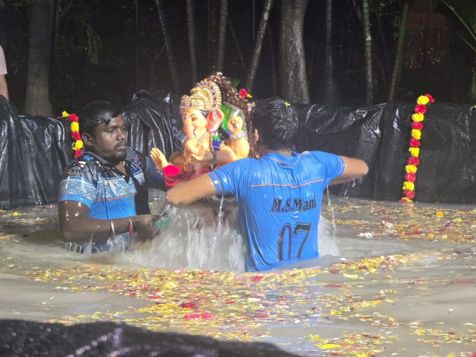 मुंबई प्रतिनिधी- आज राज्यभरामध्ये मोठ्या प्रमाणात पाचव्या दिवशीच्या गणपती विसर्जन होत आहे घराघरातील गणपती आणि मंडळांचे गणपती मोठ्या प्रमाणात मुंबई महानगरपालिकेने आयोजित केलेल्या कृत्रिम तलावातही पाच दिवसाच्या छोट्या मुर्त्या असलेल्या गणपतीचे विसर्जन करण्यात येत आहे तर त्यापैकी मोठ्या असलेल्या गणपती बाप्पाच्या मुर्त्या तलाव आणि समुद्र परिसरामध्ये विसर्जन करण्यात येत आहे