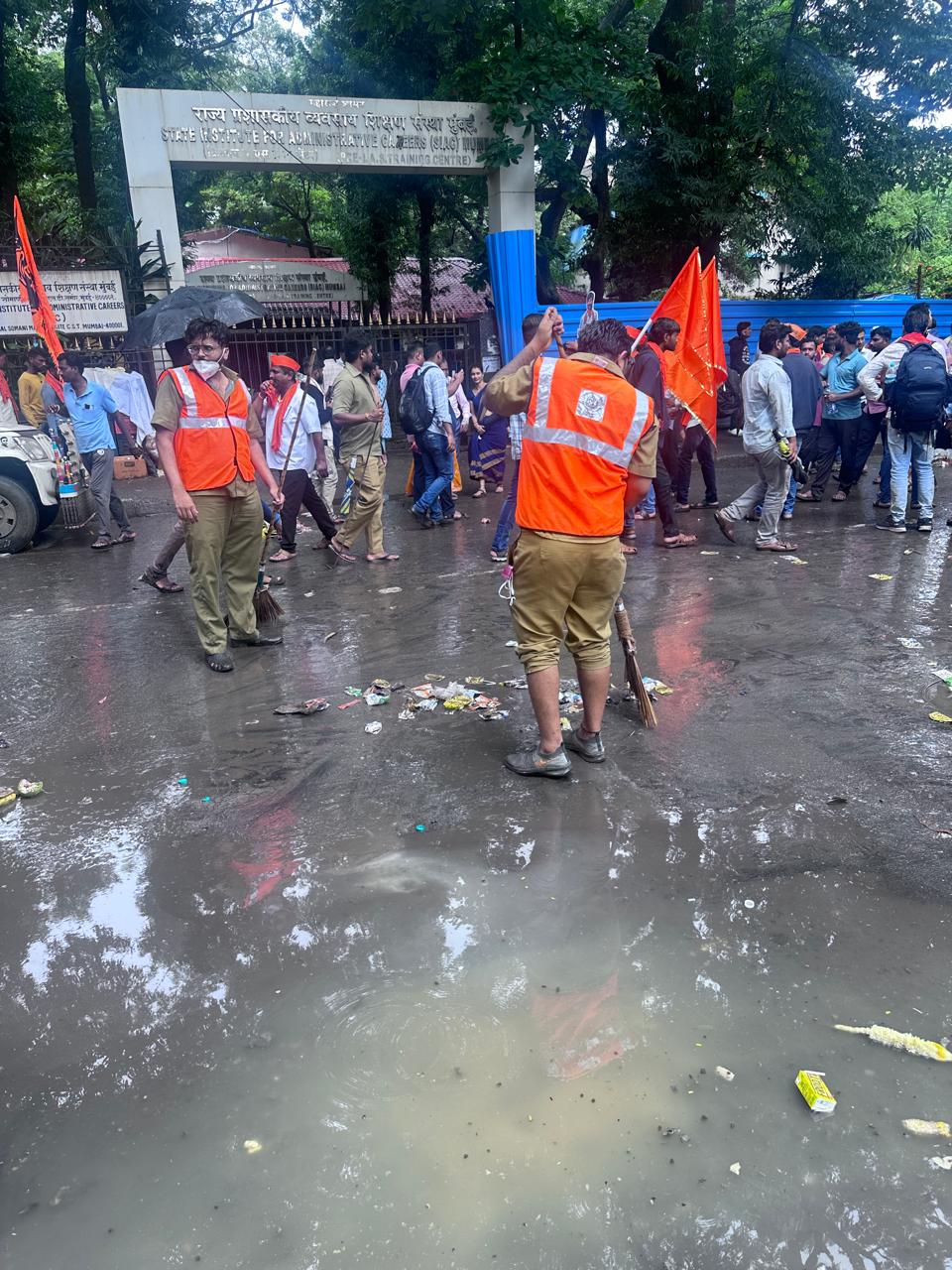 बीएमसीने मोठ्या प्रमाणात साफसफाईसाठी उपाययोजना केली असून, रात्रभर रस्ते व आझाद मैदान स्वच्छ ठेवण्यासाठी हजाराहून अधिक कर्मचारी तैनात करण्यात आले आहेत. काही कार्यकर्त्यांनी स्वच्छता केली असली तरी आंदोलन समाप्तीच्या वेळी नागरिकांची उपस्थिती कमी झाली असल्याने पूर्ण स्वच्छता होऊ शकली नाही.