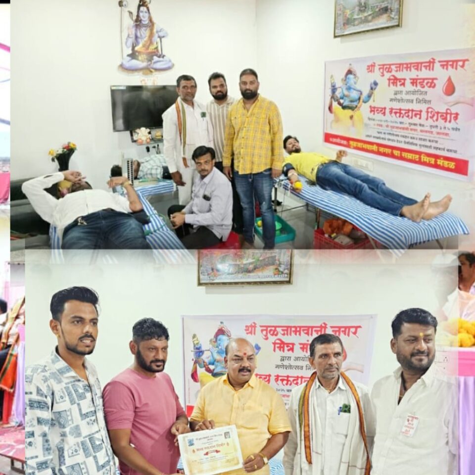 श्री तुळजाभवानी नगर मित्र मंडळातर्फे रक्तदान शिबिरात उत्स्फूर्त सहभाग