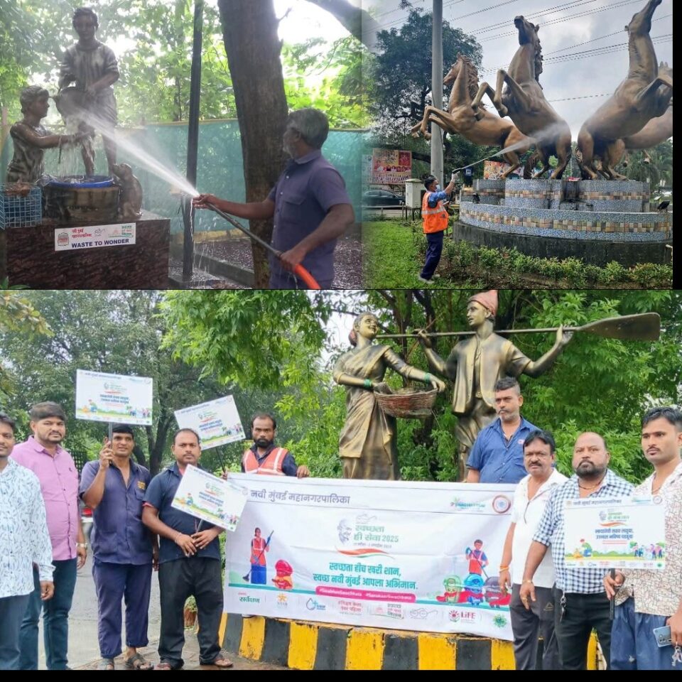 ’स्वच्छता ही सेवा’ अभियानामध्ये नवी मुंबईतील शिल्पाकृती झाल्या चकाचक